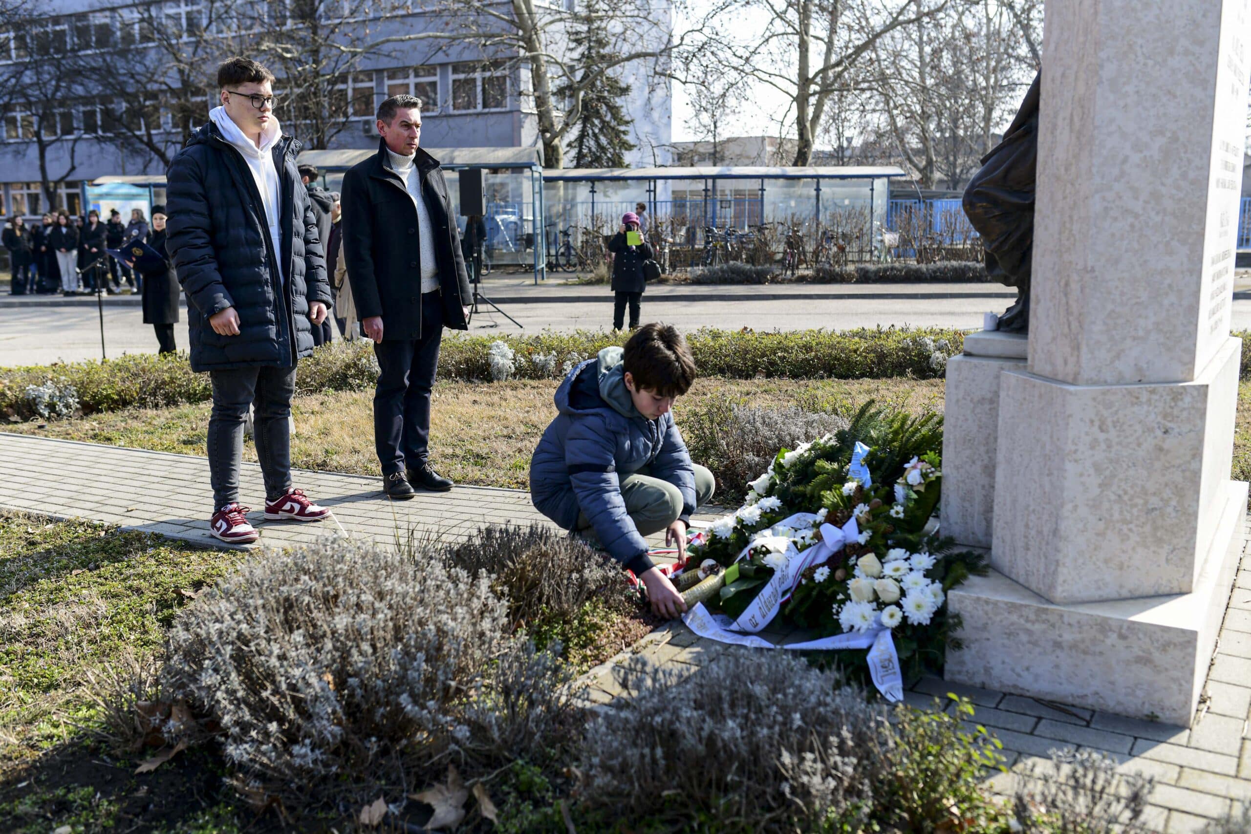 A megemlékezést koszorúzás zárta. A tisztelet és emlékezés virágait elhelyezte Kiskunfélegyháza Város Önkormányzata, a Fidesz helyi szervezete, a Constantinum Katolikus Óvoda, Általános Iskola, Gimnázium, Technikum, Kollégium, a Móra Ferenc Gimnázium, a KSZC Kiskunfélegyházi Közgazdasági Technikum, a Déli ASZC Mezőgazdasági és Élelmiszeripari Technikum, Szakképző Iskola és Kollégium, a József Attila Sportiskolai Általános Iskola, a Batthyány Lajos Általános Iskola, a Darvas Általános Iskola, a Platán Utcai Általános Iskola és a Dózsa György Általános Iskola.