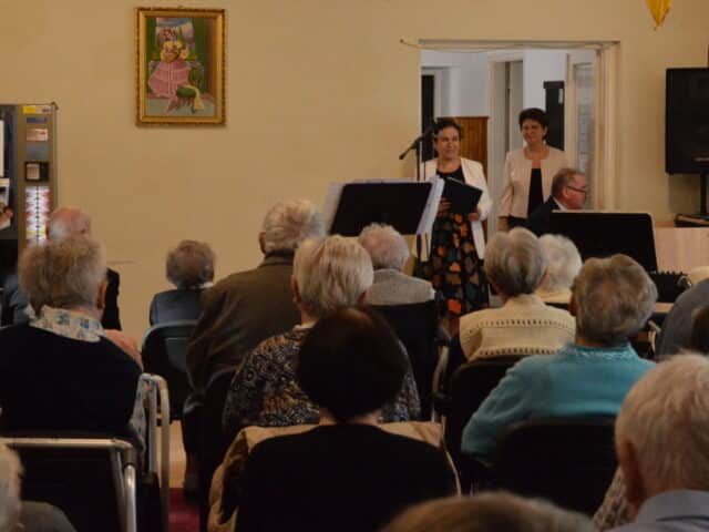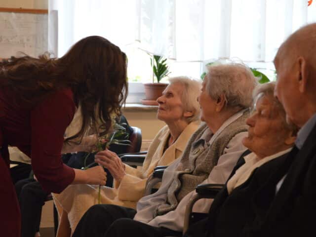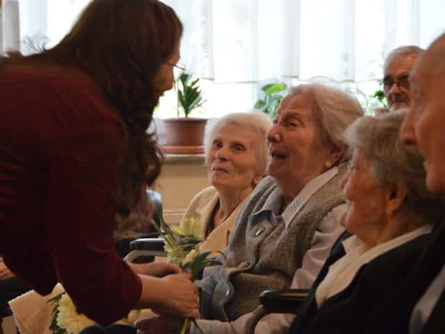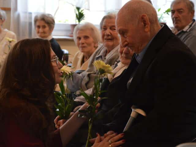 A Szivárvány Személyes Gondoskodást Nyújtó Intézmény dolgozói külön figyelemmel fordultak a jelenlévő legidősebb ellátottak felé, akiket Magyariné Tóth Erika intézményvezető, az ünnepségek zárásaként, egy-egy szál virággal is köszöntött.