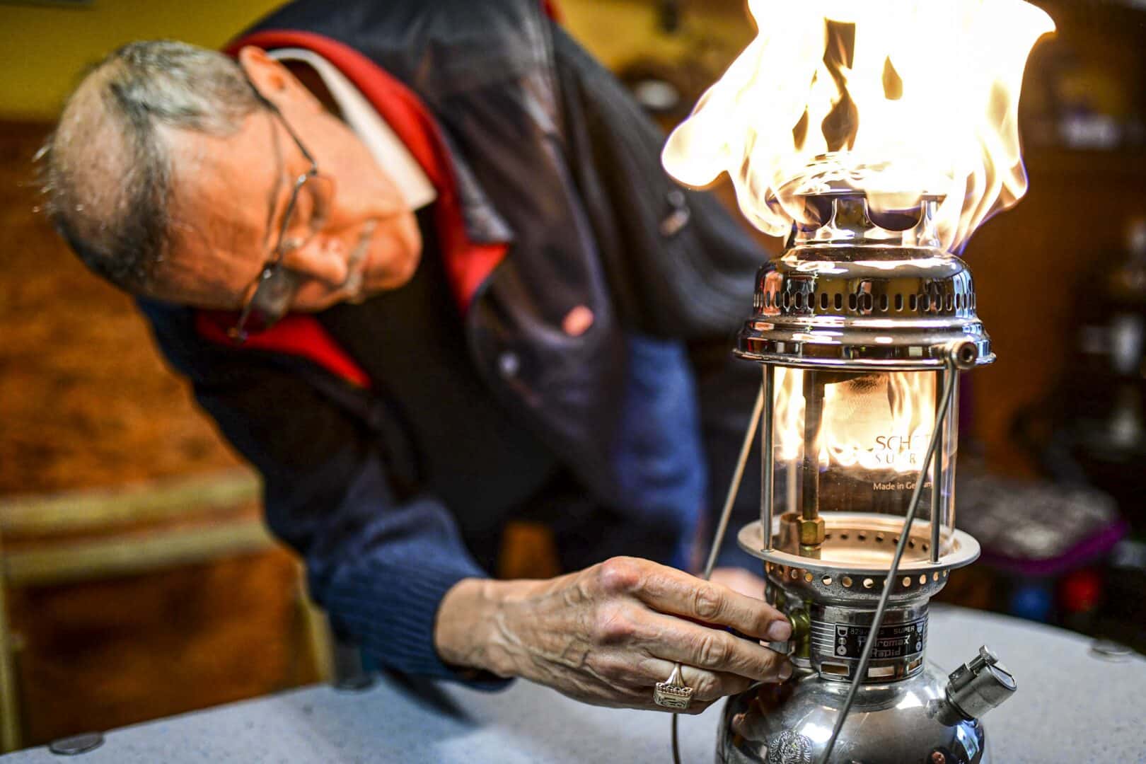 – A gyűjtést 34 éve, 1991-ben kezdtem el. Én voltam a vásártér első bérlője a rendszerváltás után. Nem volt a téren közvilágítás, így a rendezéshez lámpák és rendezők kellettek. Eleinte gázharisnyás petróleumlámpákat vettem, egyiket a másik után, de ezeket elő kell készíteni, felpumpálni levegővel, karbantartani, amit a rendezők többször elmulasztottak. Idővel ezek „nyugdíjba” mentek, helyettük propán-bután kempinglámpákat használtam, én pedig elkezdtem a gyűjtést azzal a nyolc lámpával – meséli a kezdetekről Virág István.
