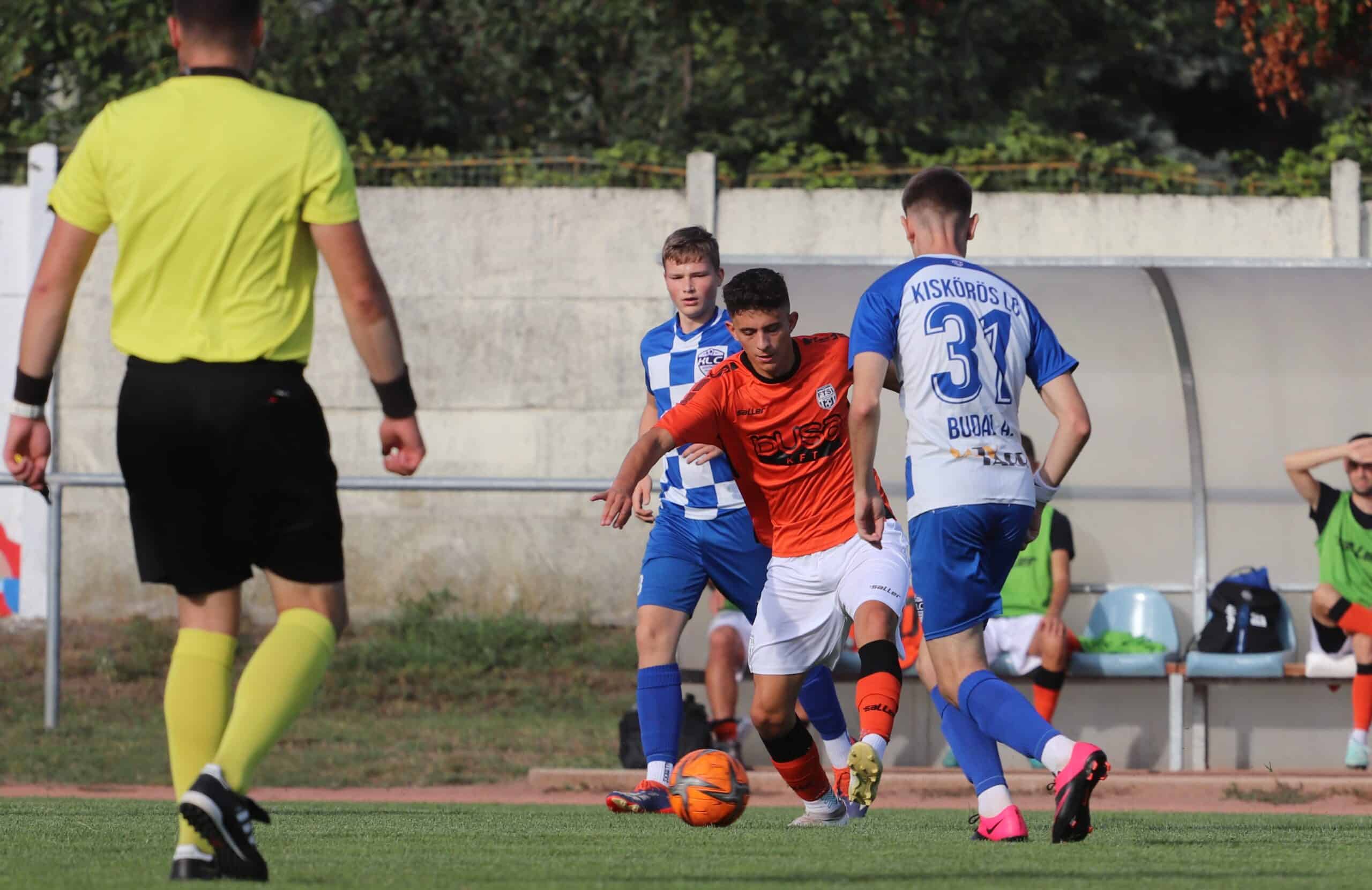 Mindjárt a találkozó elején gólt szerezhetett volna a hazai gárda, mert Hegedűs lövése lepattant Pszota előtt, de a kapus szögletre tudta ütni a labdát. A másik oldalon Nagy Szabolcs bátor vetődéssel mentett Albert Áron elől. A 23. percben Molnár Edvárd látta, hogy Pszota kint áll a kapujából, ezért messziről tüzelt, a lövése alig ment mellé. A 25. percben Csáki rosszul adott haza, Kurgyis rácsapott a labdára, kicselezte Pszotát, kicsit kisodródott, de azért be tudta gurítani a labdát a hálóba 1–0. Tíz perccel később Balázs Bence lövésénél a kiskőrösi hálóőr már verve volt, de egy védőről szögletre pattant a labda. A belőtt labdát Kurgyis sarokkal helyezte a bal alsó sarokba 2–0. Az első félidő hajrájában Jókai szabálytalankodott az egyik kiskőrösi csatárral szemben, a tizenhatoson belül, amiért a játékvezető büntetőt ítélt. Szabó Dávid tizenegyesét Nagy Szabolcs ki tudta ütni.