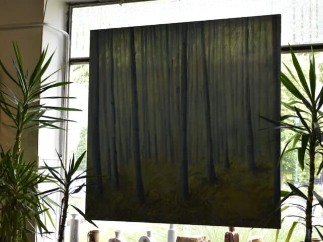 A most megnyílt kiállításon több pipacsos festmény mellett tájképek is láthatók. Ezeken a kompozíciókon a természet nyugalma és szépsége jelenik meg, a fények sejtelmes játékával keretezve. Szombathelyi Árpád szívesen fest növényeket, a jövőben pedig mályvát és nőszirmot is szeretne vászonra vinni.