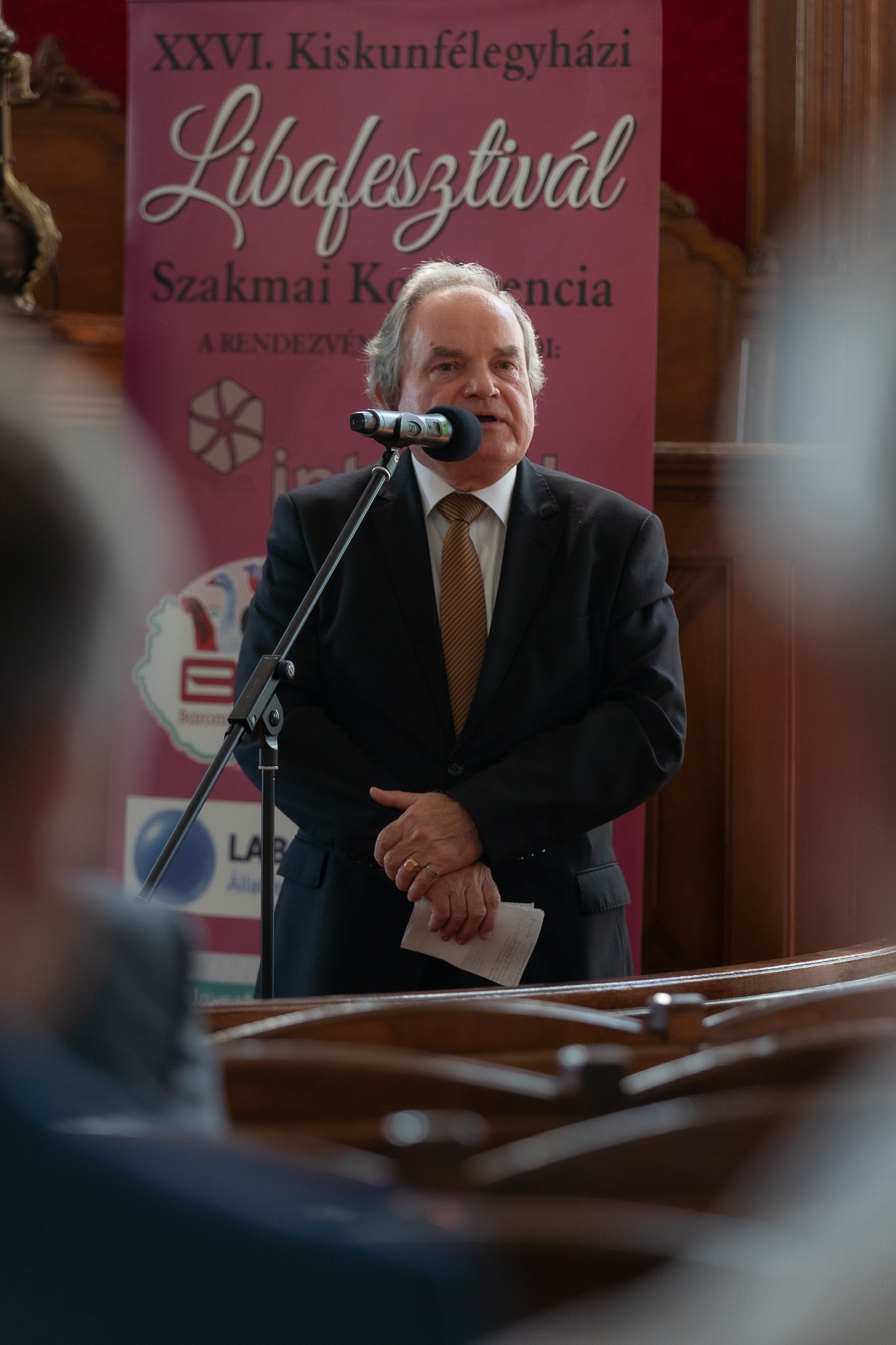 Dr. Horváth Sándor örömét fejezte ki amiért a konferencián olyan résztvevőket is üdvözölhetett, akik már az első alkalommal jelen voltak. Felhívta a figyelmet a hungarikum jellegű viziszárnyas- és libaipar megőrzésének fontosságára, a legmagasabb élelmiszerbiztonsági előírások betartására, az állatjólét feltételeinek megteremtésére, valamint a generációk közötti átmenet támogatására. Említést tett az éghajlati változásokra való reagálás, a takarmányozás hatékonysága, valamint a marketing és értékesítés fejlesztésének szükségességéről is, majd minden résztvevőnek sikeres és tartalmas napokat kívánt.