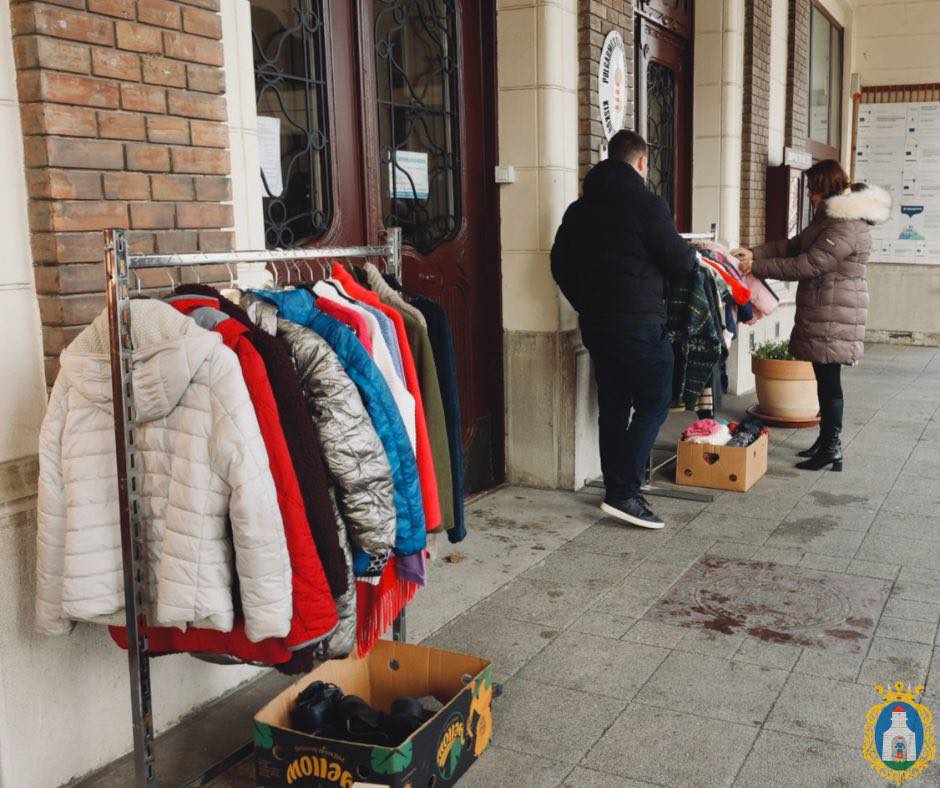 Meleg ruhadarabokat helyeztek ki a polgármesteri hivatal bejáratánál