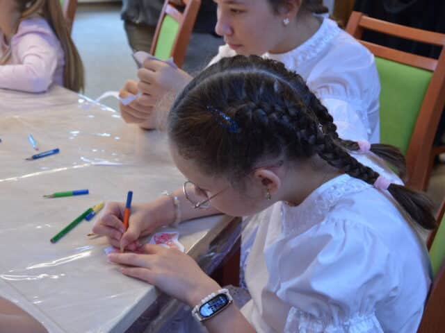 A délelőtt kézműveskedéssel indult: a gyerekek galambot színezhettek, valamint díszes virágokból ajtódíszt készíthettek, miközben a Kossuth Lajos Szakképző Iskola fodrásztanulói hajfonással tették még különlegesebbé a napot.