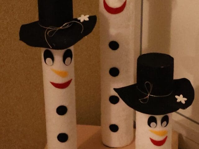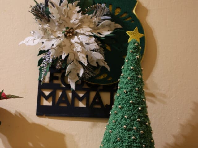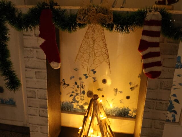 A lépcsőfordulókban a megvásárolható díszek mellett Mária sajátkezűleg készített munkái is megtalálhatók. Gipszet önt, varr, ragaszt, fest, és gyakran újrafelhasznált dobozokból, apró kövekből alakít ki új és kedves belső tereket. A hóember, a csillogó szalagkompozíciók, az egyedi ablakdíszek mind az ő kreativitásáról árulkodnak.