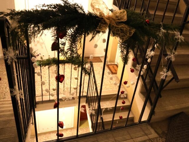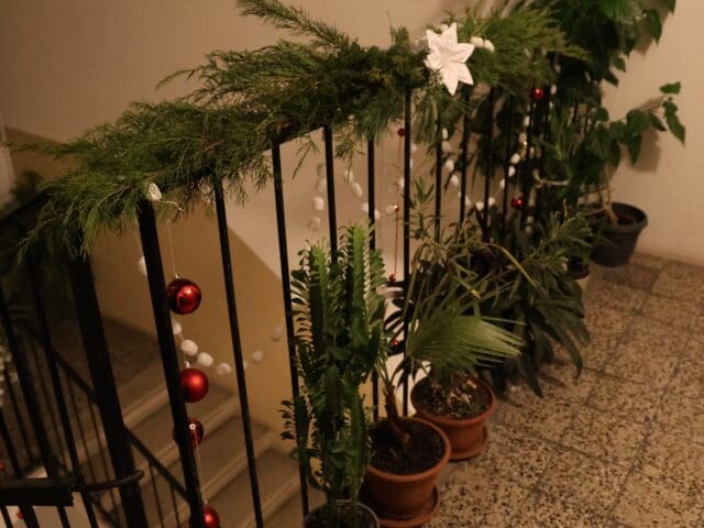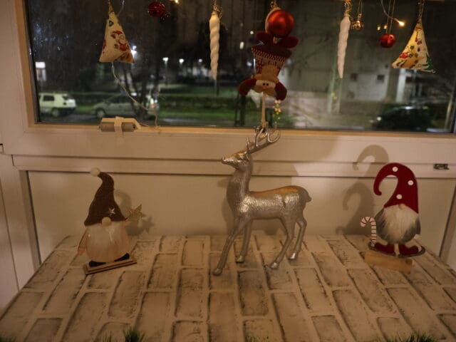 – Nem szeretek kopár lépcsőházban közlekedni, főleg ünnepek idején – mondja nevetve, hozzátéve: éveken át gyűjtötte a kellékeket, mindig bővült valamilyen aprósággal a készlet: egy szalag, gömb, ablakdísz, kedves figura...