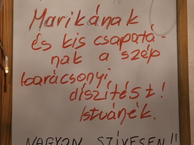Lánya rendszeresen segít a dísztárgyak, fények elhelyezésében és rögzítésében, és egy ideje a közösképviselő is hozzájárul az egész lakóközösséget megörvendeztető kezdeményezéshez, főként a világító díszekhez nélkülözhetetlen elemekkel.