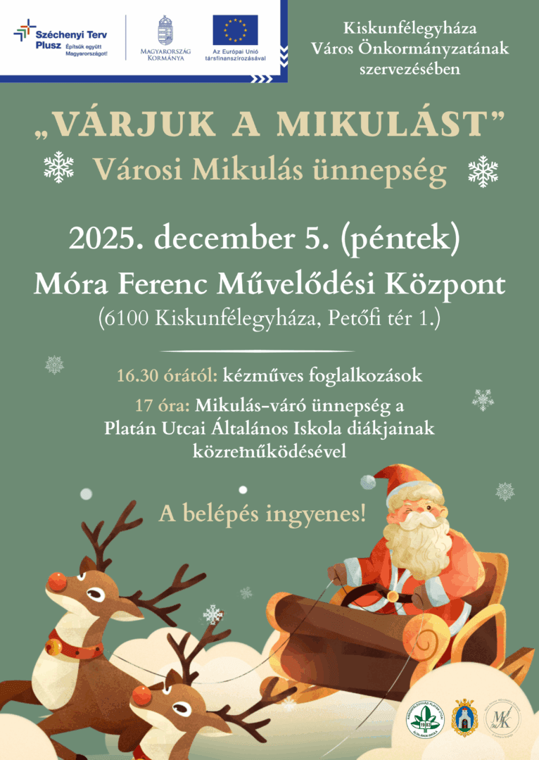 Várjuk a Mikulást elnevezéssel családi programot szervez a Kiskunfélegyházi Móra Ferenc Művelődési Központban december 5-én, pénteken, 16.30 órától.