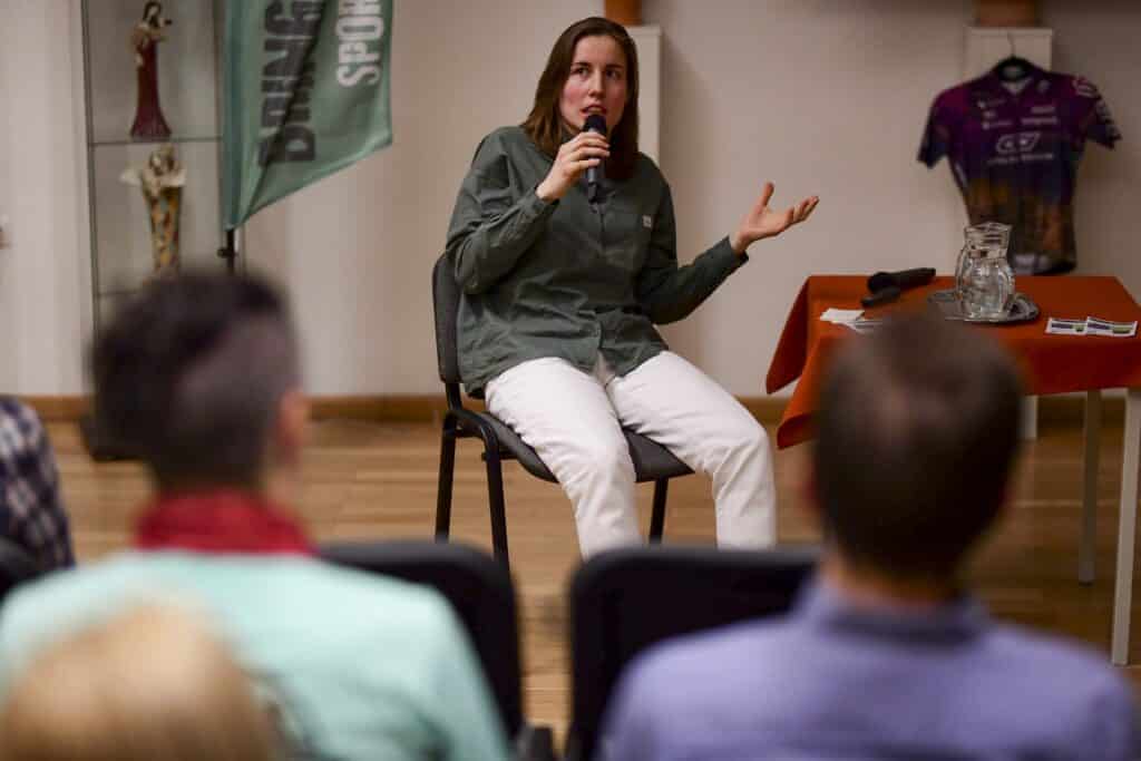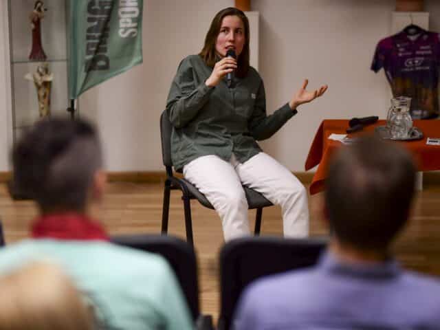Vasadi Anna előadásában személyes történetén keresztül engedett betekintést a versenysport világába. Elmondta, hogy tavaly hivatalosan visszavonult a profi versenyzéstől, és jelenleg Csehországban egy kerékpárüzlet munkatársaként dolgozik, ahol a magyar kereskedőkkel tartja a kapcsolatot.