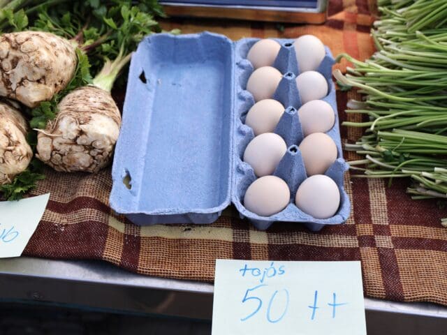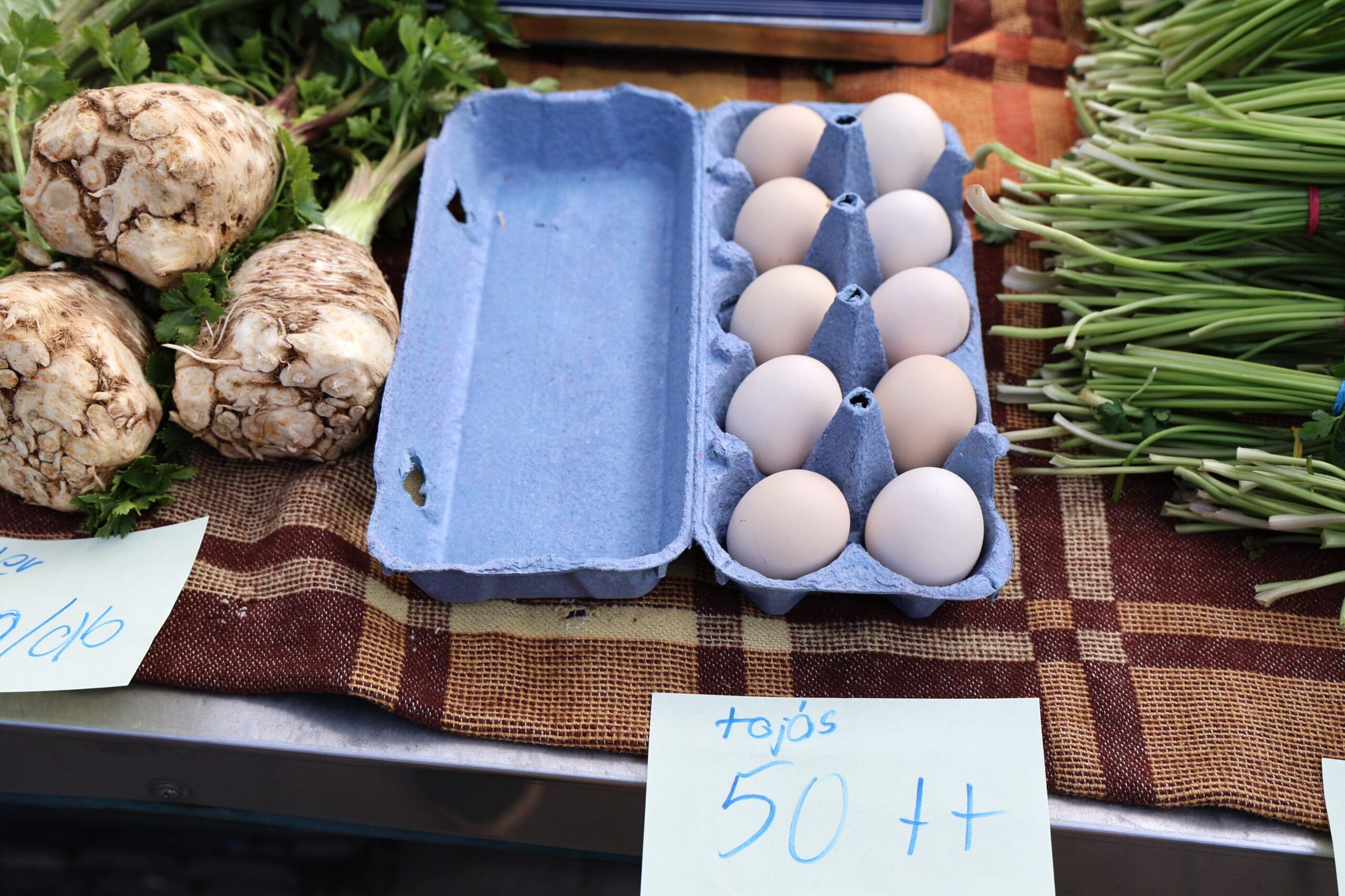 Tojást számos standon lehet kapni, kisebb és nagyobb tételben. Ára jelenleg 80 és 90 forint között mozog, méretétől függően. A tojásárak húsvétig még néhány forintot emelkedhetnek – tudtuk meg az egyik termelőtől, amelynek sajnálatos aktualitását a madárinfluenza okozza, az egyes állományok felszámolása miatt kevesebb tojás kerül forgalomba.
