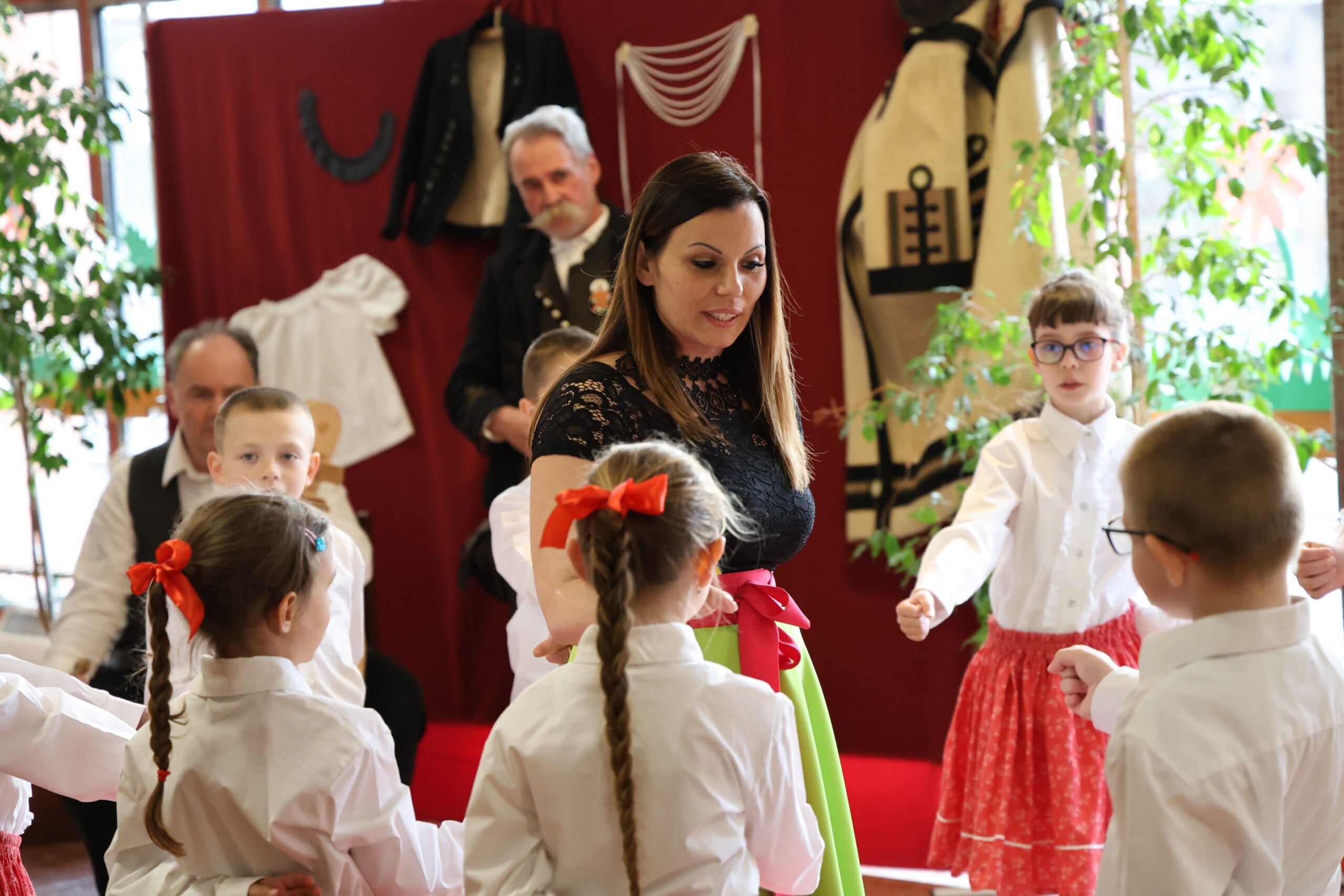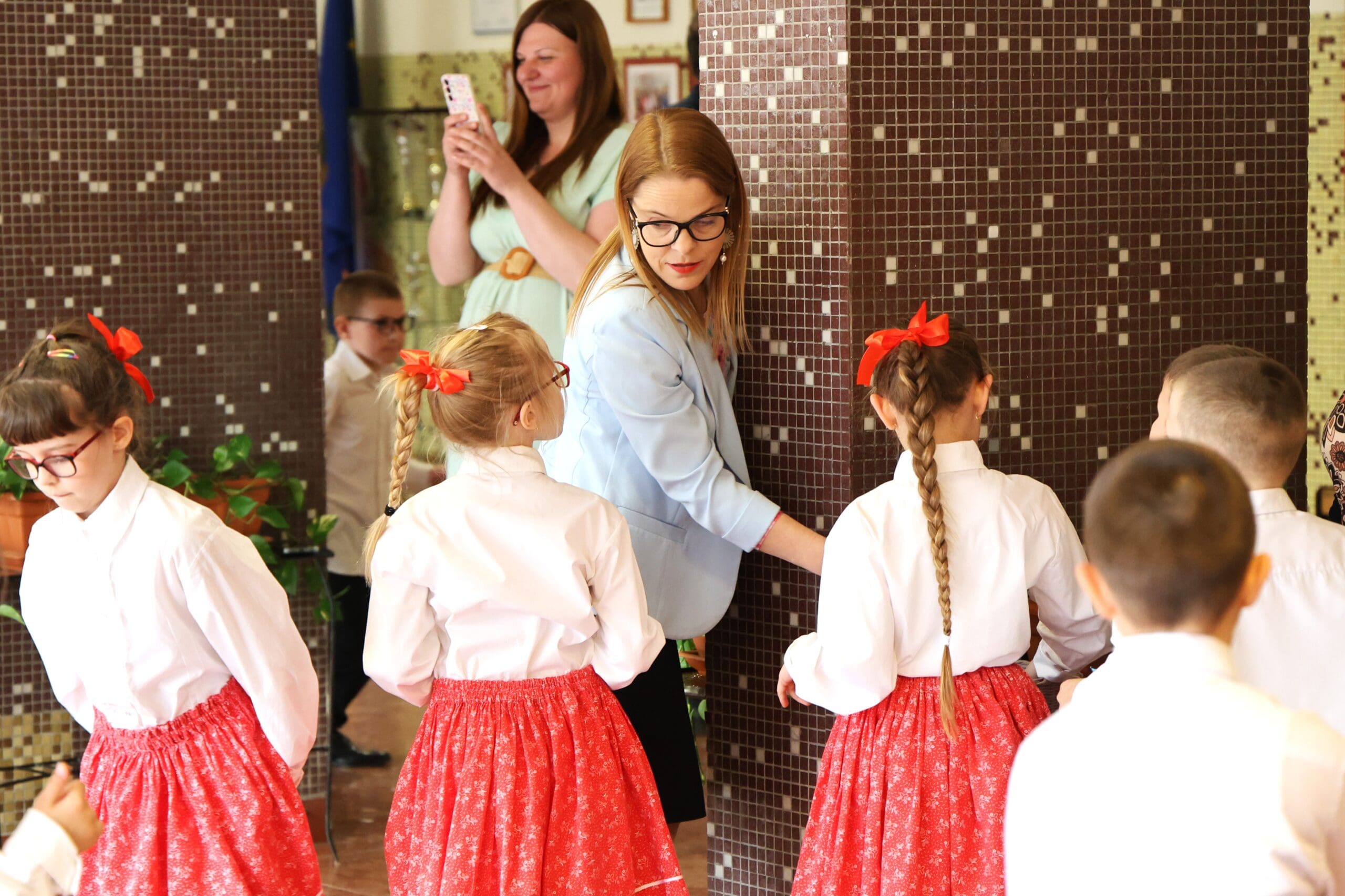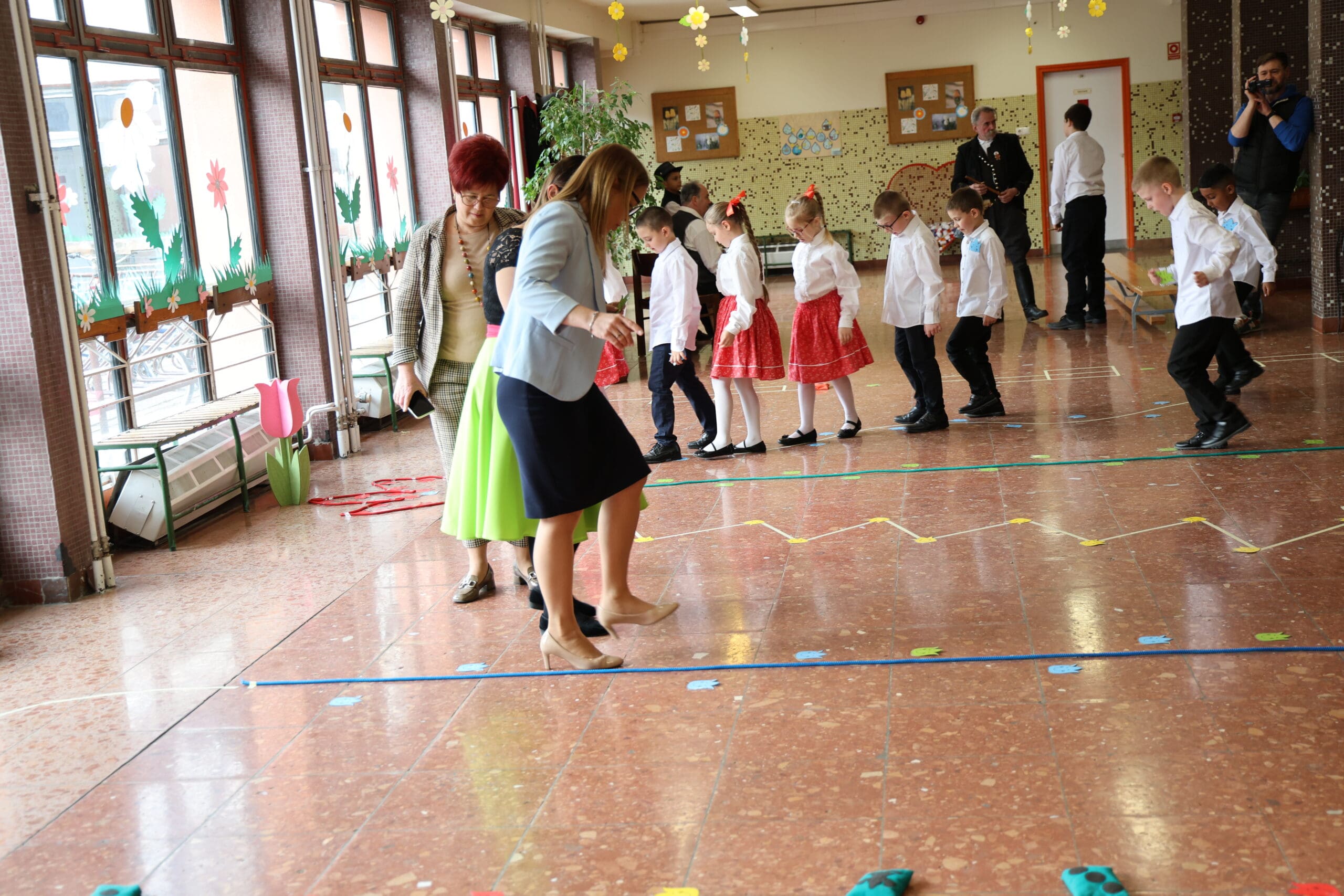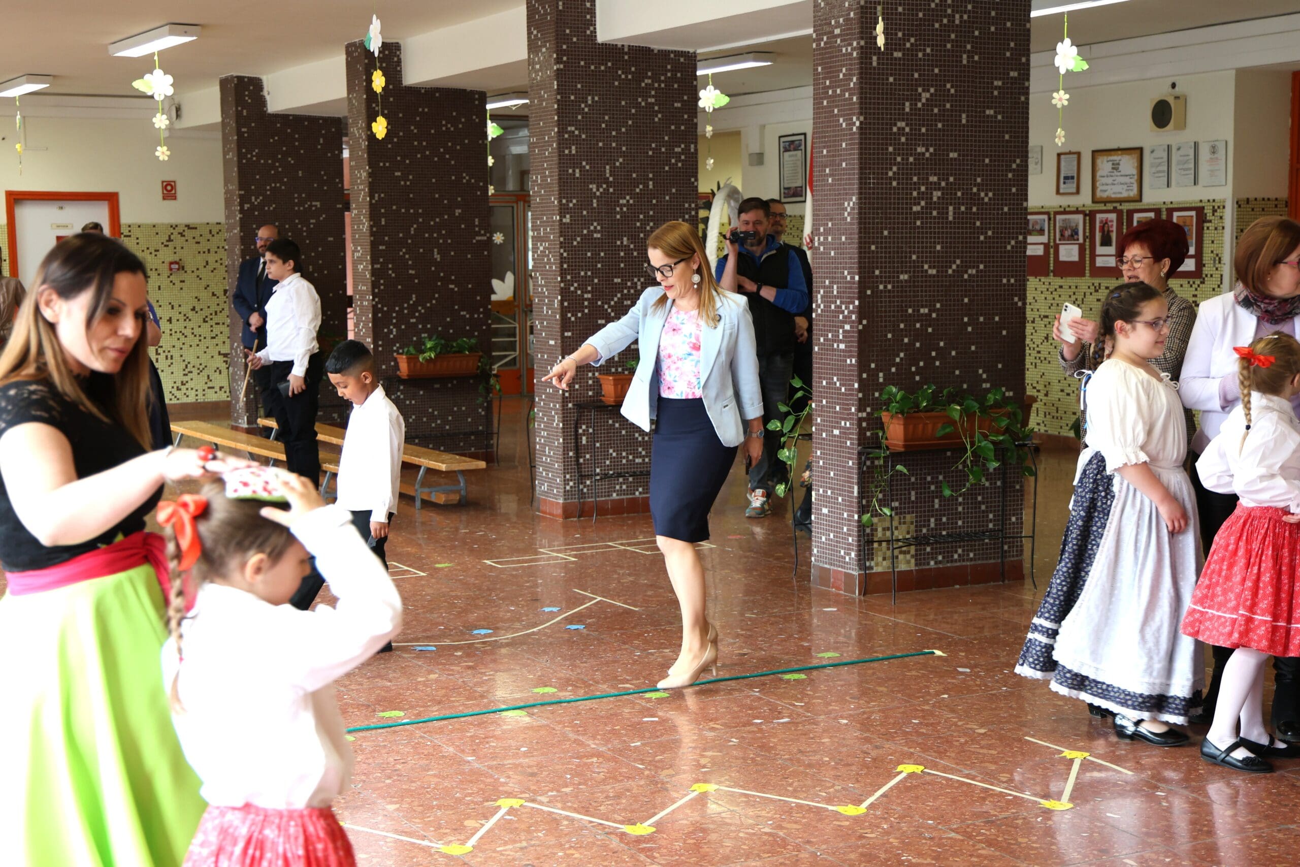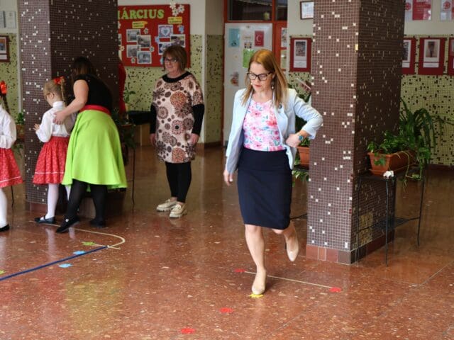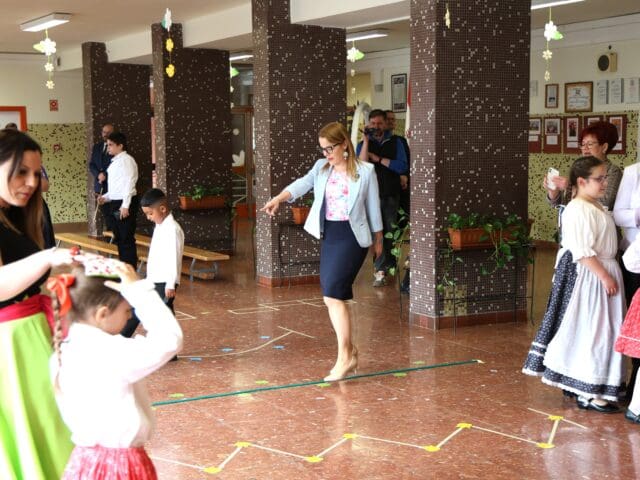 A miniszterelnöki biztost Jankovszki Zoltánné igazgató és Vásárhelyiné Ficsór Katalin igazgatóhelyettes fogadta. Érkezését követően dr. Balatoni Katalin szinte azonnal bekapcsolódott a táncoló gyermekek közé, ami jól tükrözte az esemény közvetlen, barátságos hangulatát.
