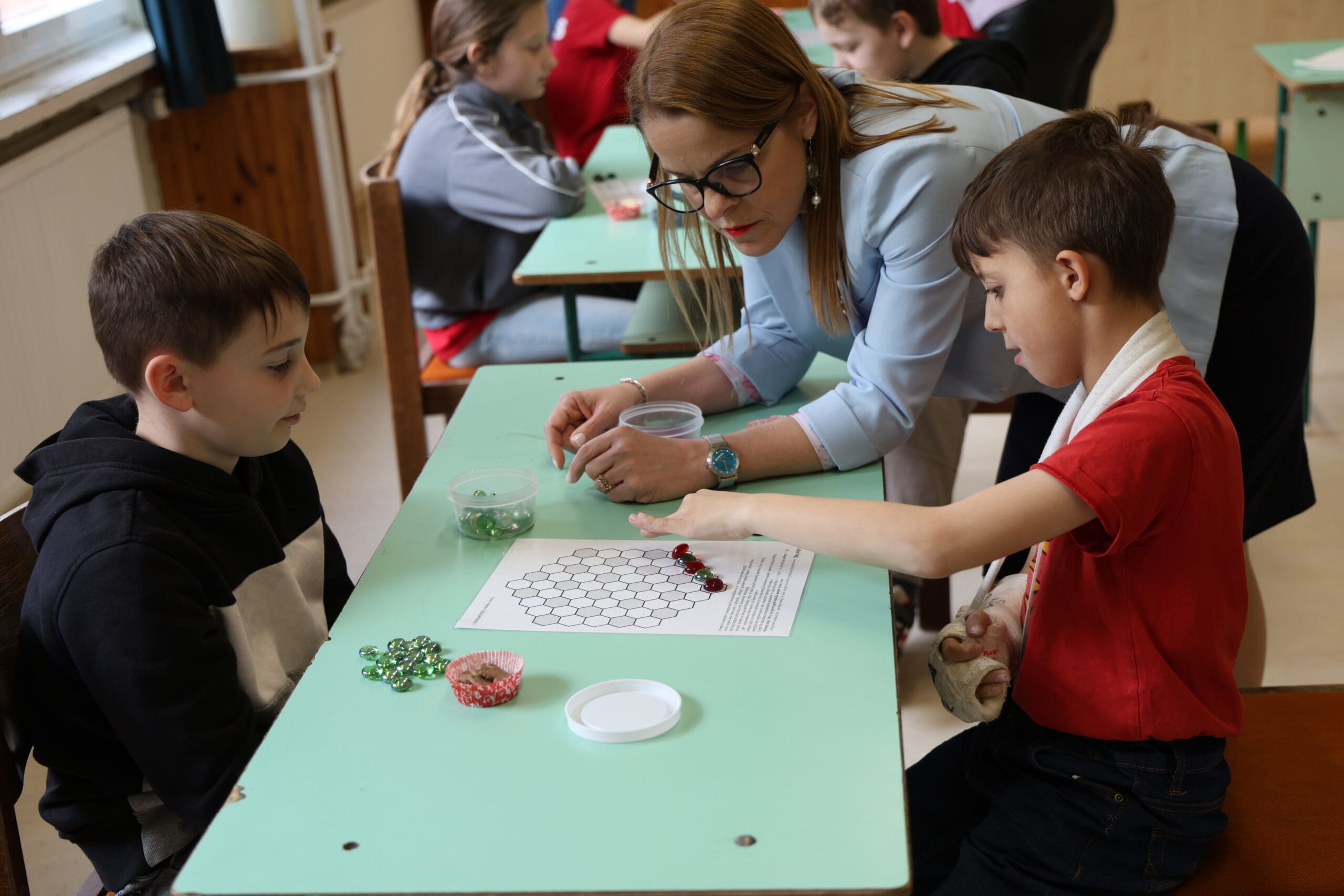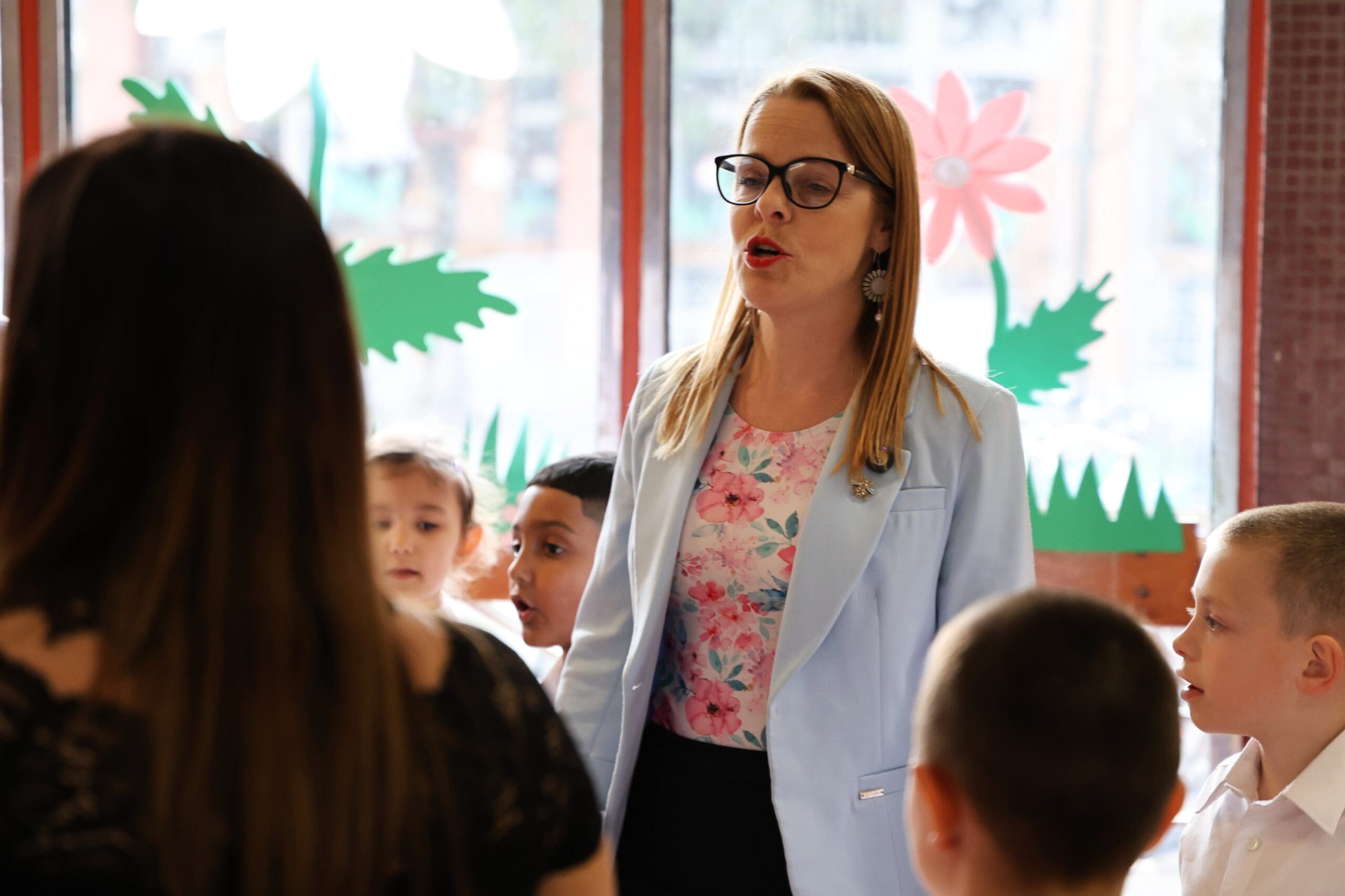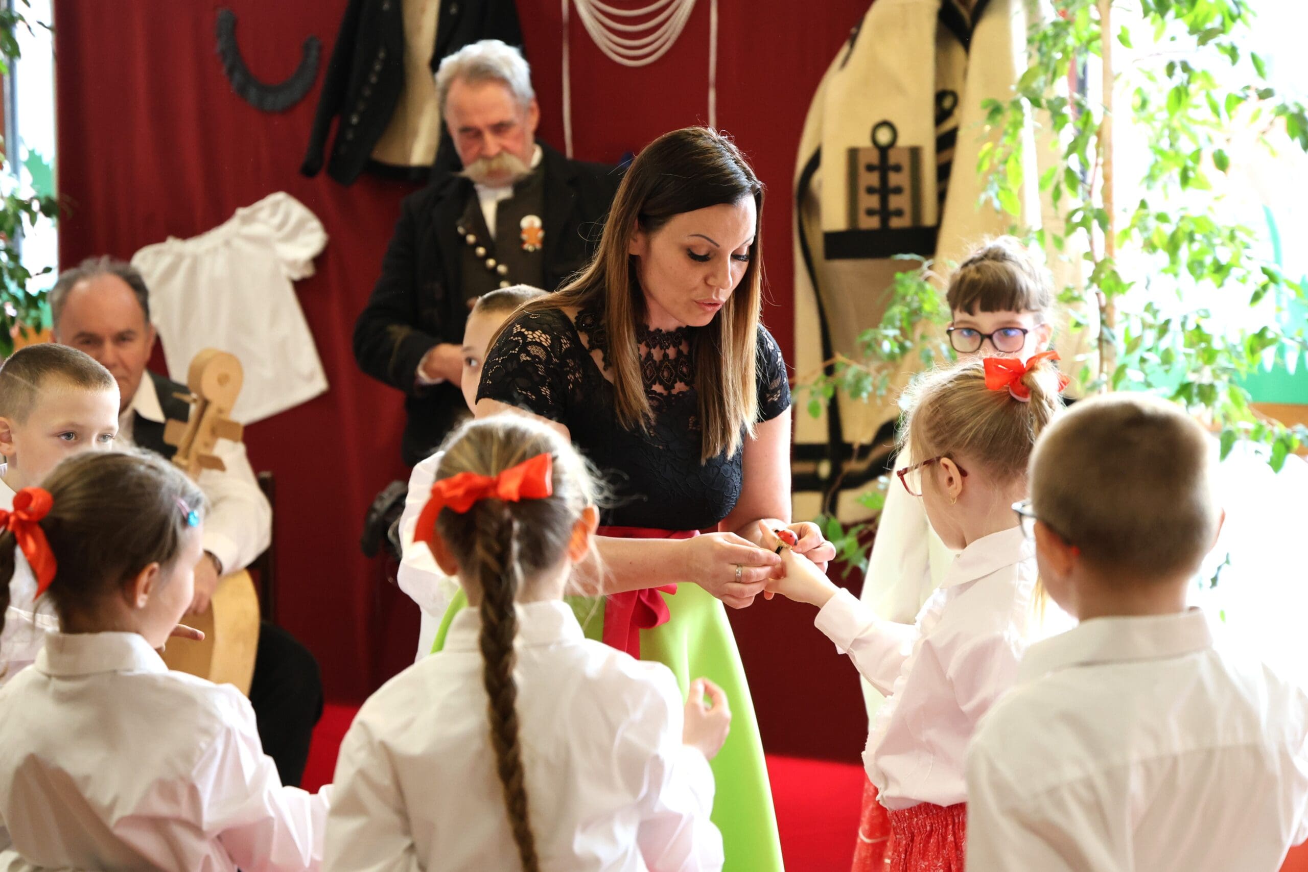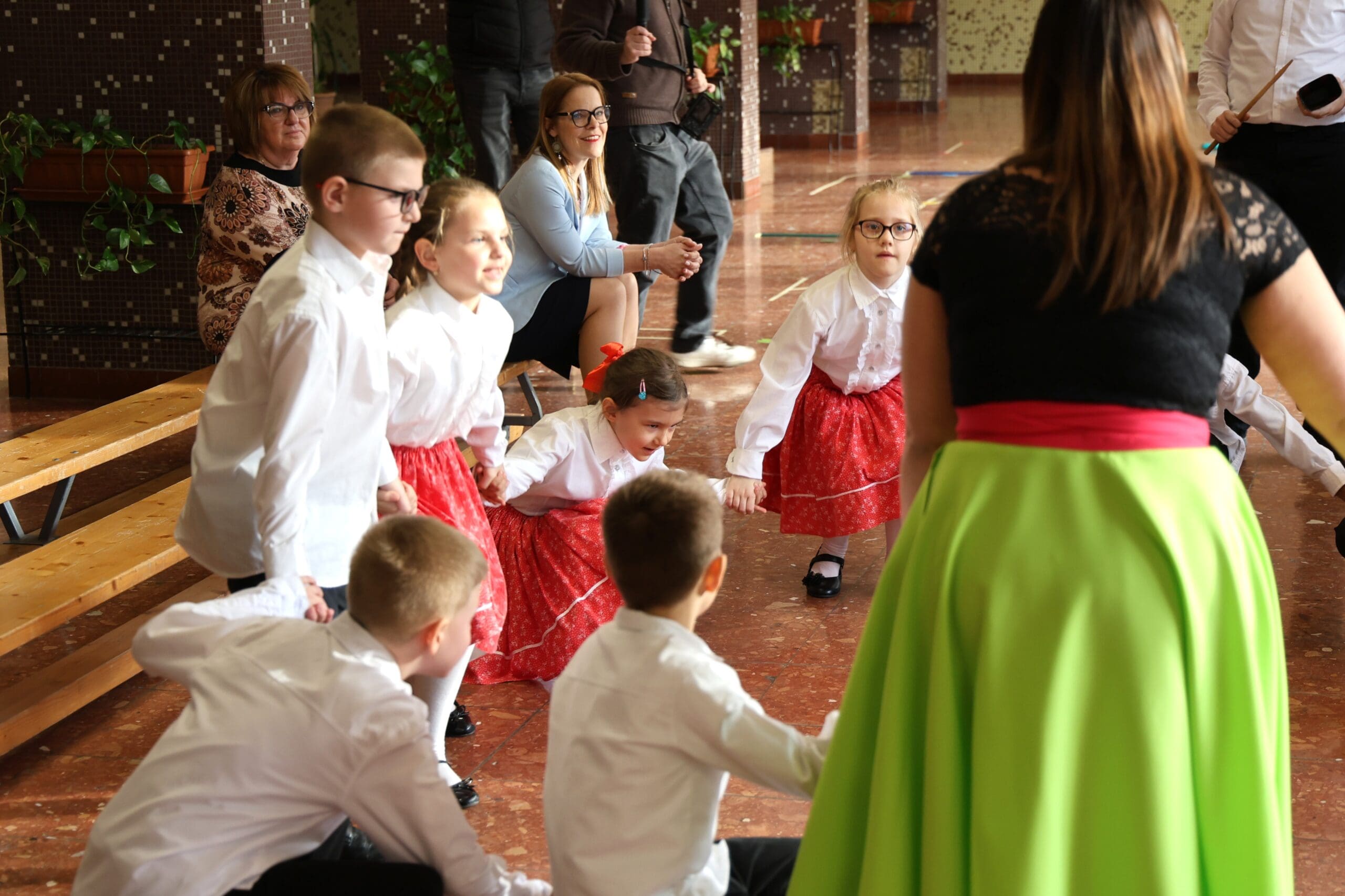 A miniszterelnöki biztost Jankovszki Zoltánné igazgató és Vásárhelyiné Ficsór Katalin igazgatóhelyettes fogadta. Érkezését követően dr. Balatoni Katalin szinte azonnal bekapcsolódott a táncoló gyermekek közé, ami jól tükrözte az esemény közvetlen, barátságos hangulatát.