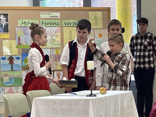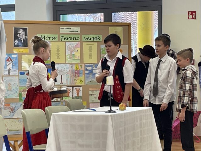 Február 7-én az iskolai megemlékezés keretében az 5/b osztály tanulói, valamint Rádi Georgina (7/b) és Gál Péter Attila (8/a) adtak elő műsort Bakai Ildikó tanárnő felkészítésével. A megemlékezés központjában Móra Ferenc Csicseri történet című műve állt, amelyen keresztül a diákok bemutatták az író sokszínűségét és örökségének gazdagságát. Az előadás mesékkel, versekkel és táncokkal tette élvezhetővé Móra Ferenc világát, amelyben a jóság és emberség mindig győzedelmeskedik.