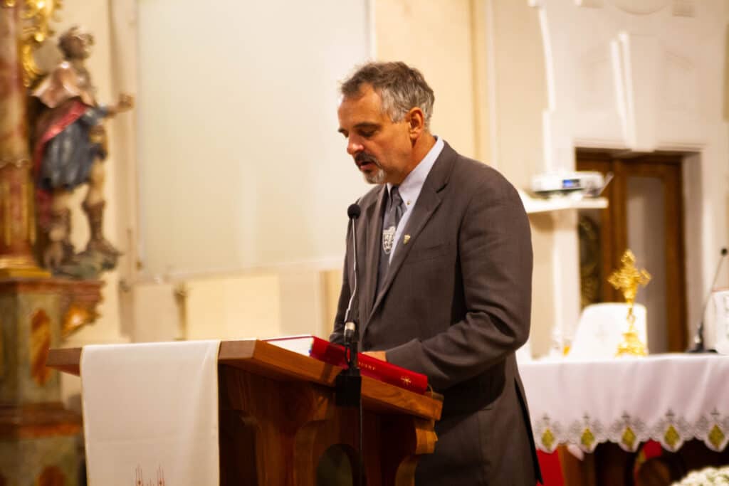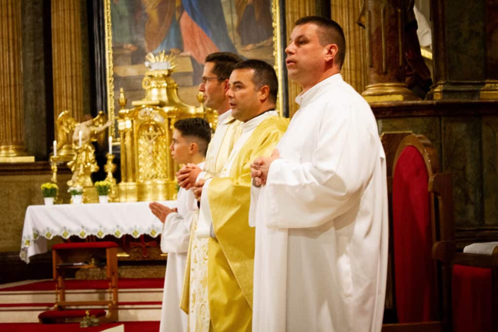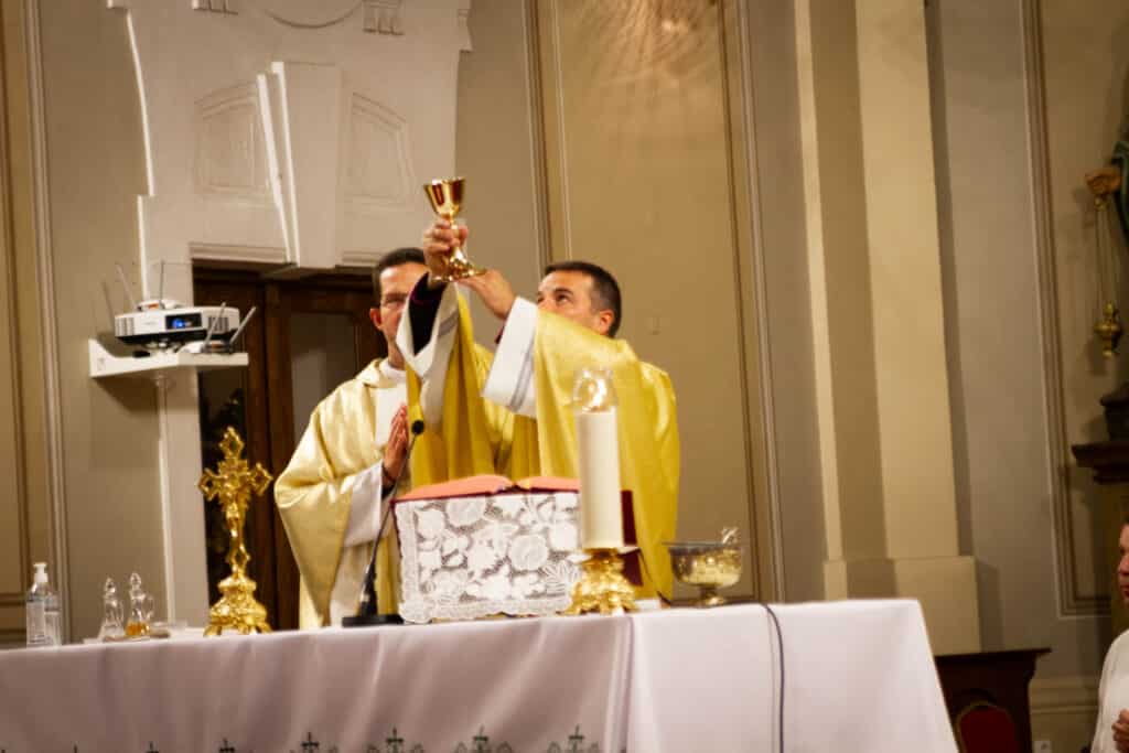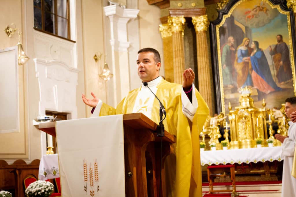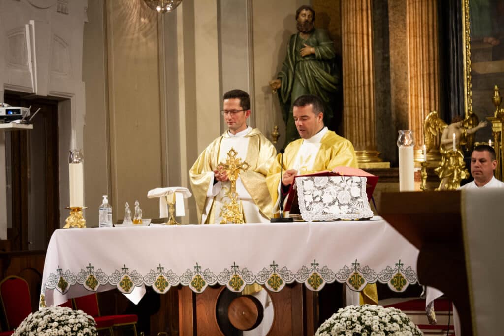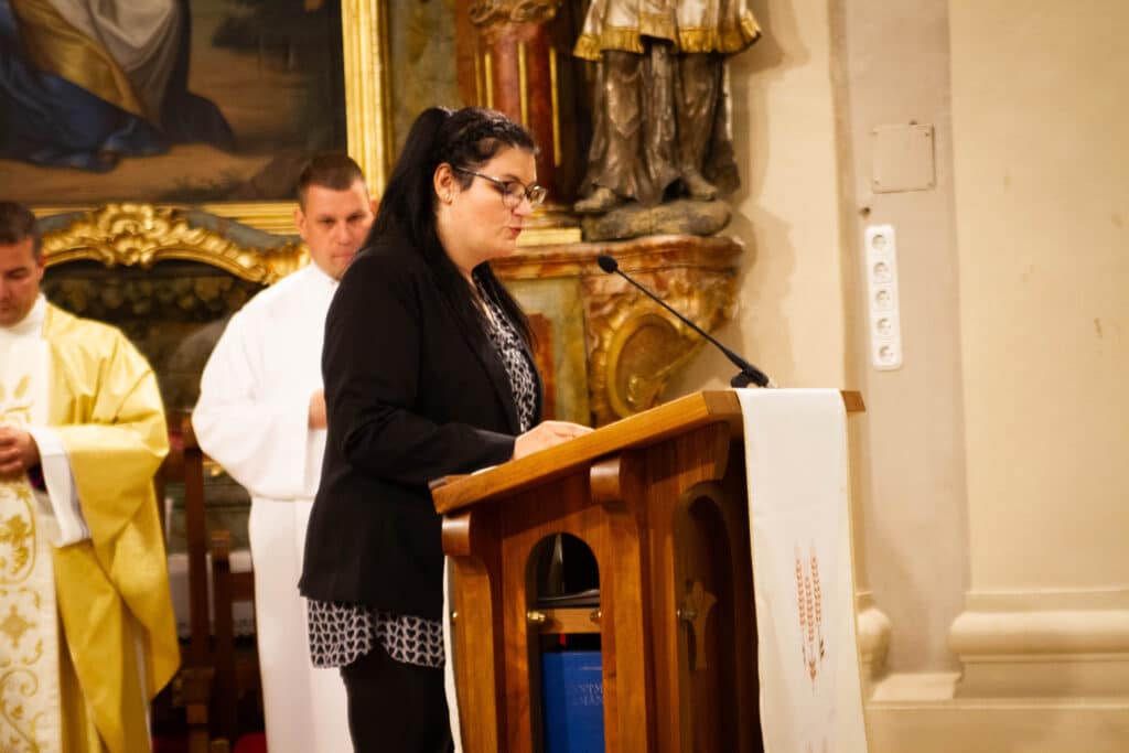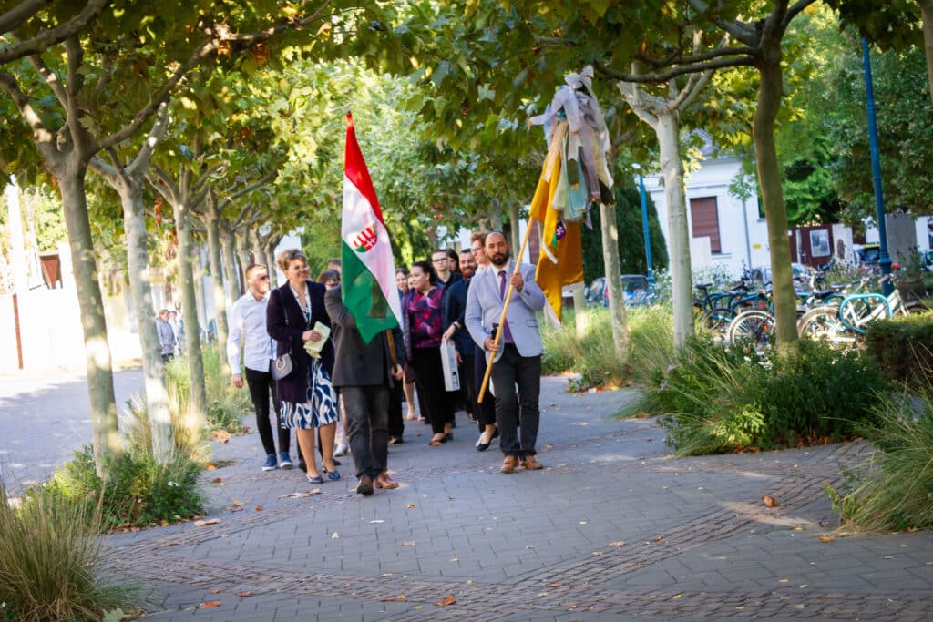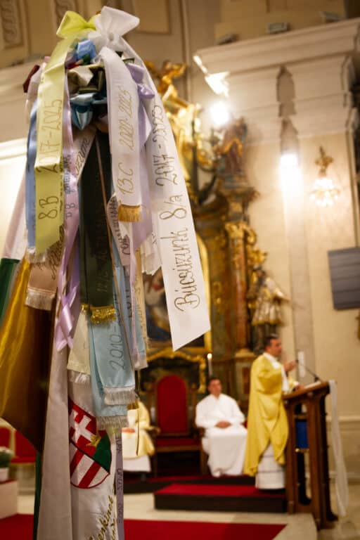 A nap egyik legemlékezetesebb része a hálaadó szentmise volt, amelyet a Sarlós Boldogasszony templomban tartottak Geszler Péter esperes-plébános vezetésével. A szertartáson diákok, tanárok és intézményvezetők egyaránt közreműködtek, közös imádsággal köszönve meg az iskola múltját és jelenét formáló személyeket. A mise végén megáldották a 2000-2025-ös emlékszalagot, amit az első, 2004-ben végzett osztály képviselője helyezett el az iskolazászlón.