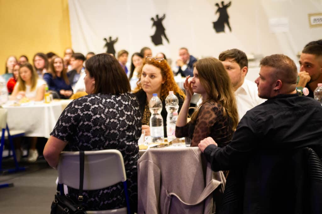 Az este során három öregdiák – Könyves Péter, Tóth Judit és Bajáki Bence – osztotta meg személyes emlékeit, amelyek jól tükrözték az iskola közösségformáló erejét és értékrendjét.