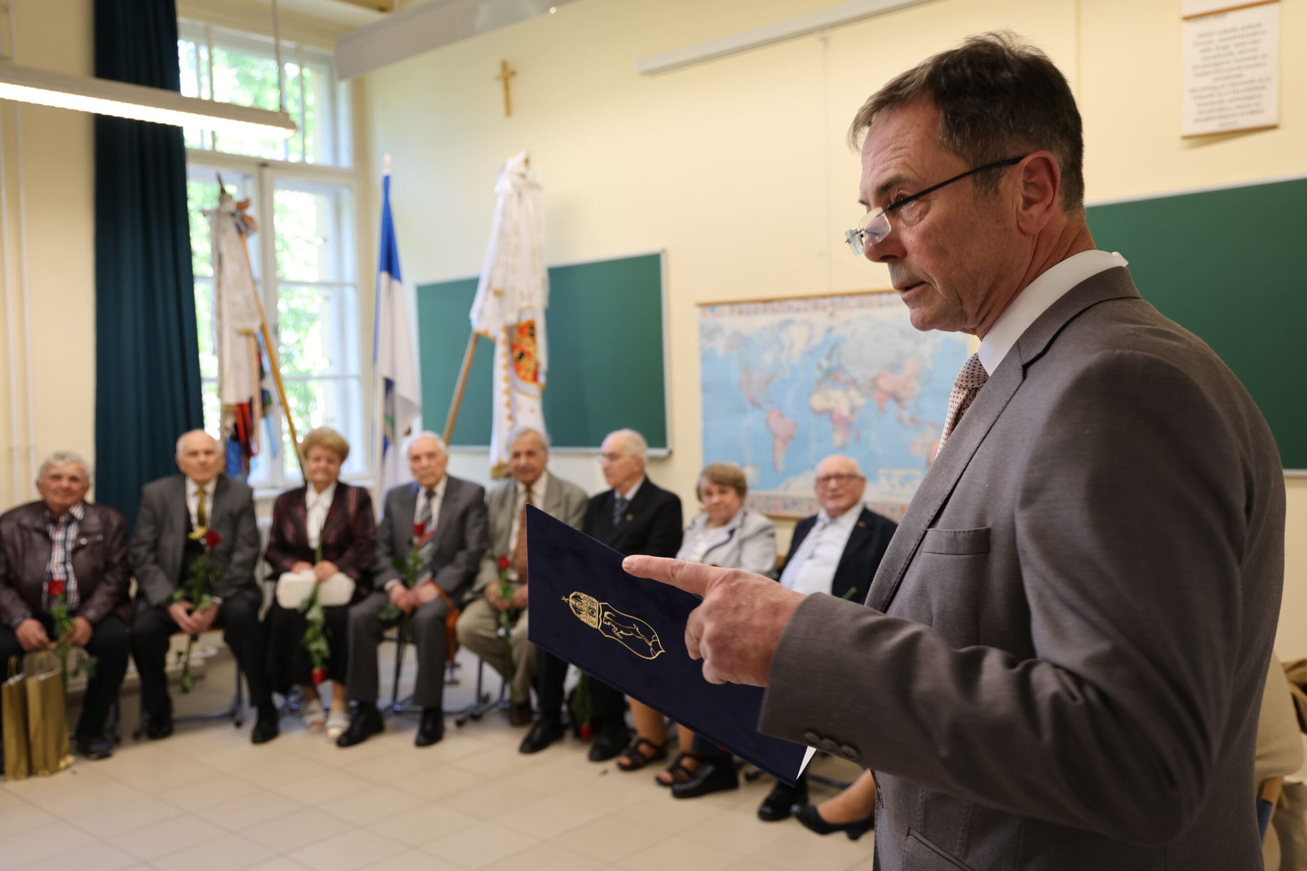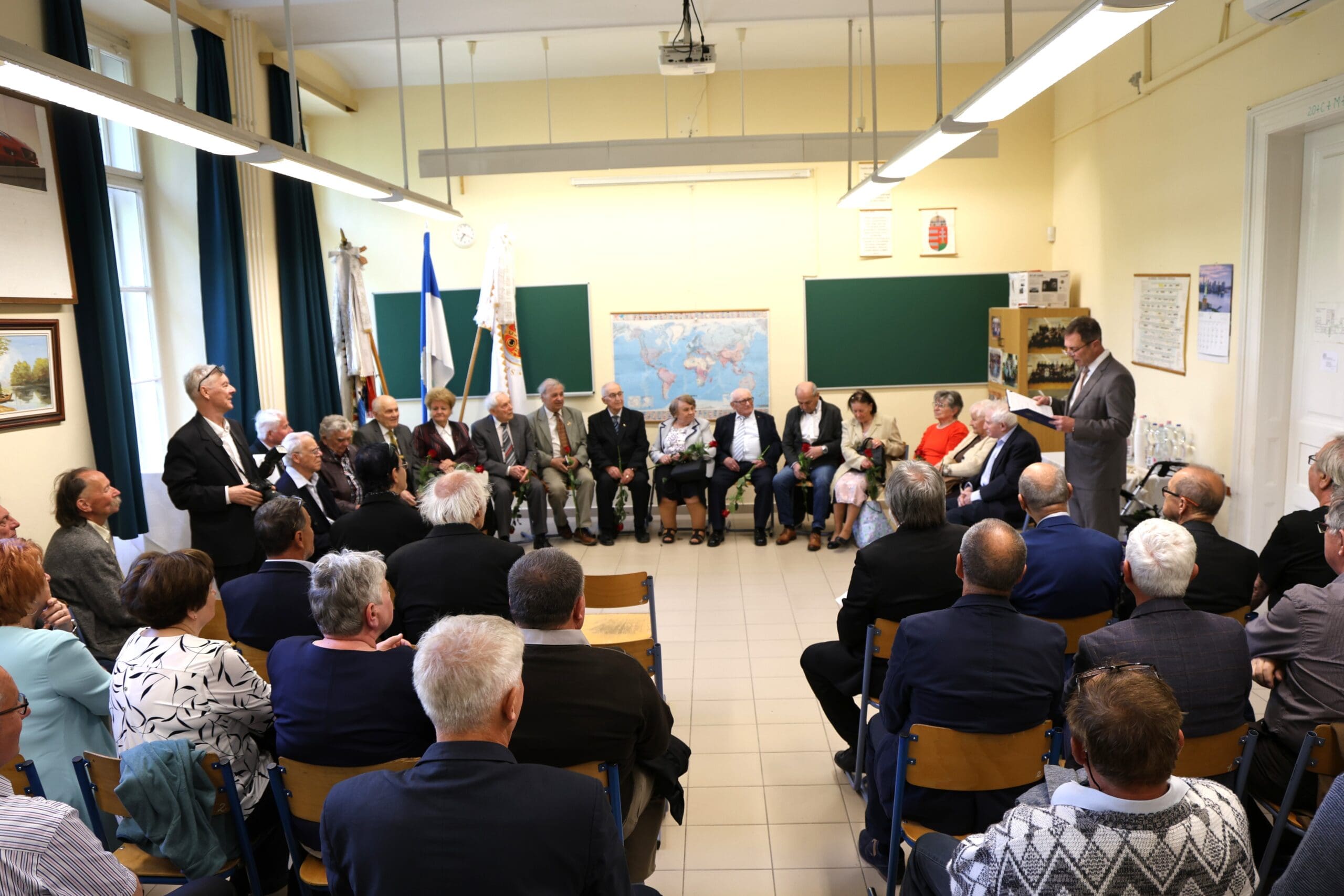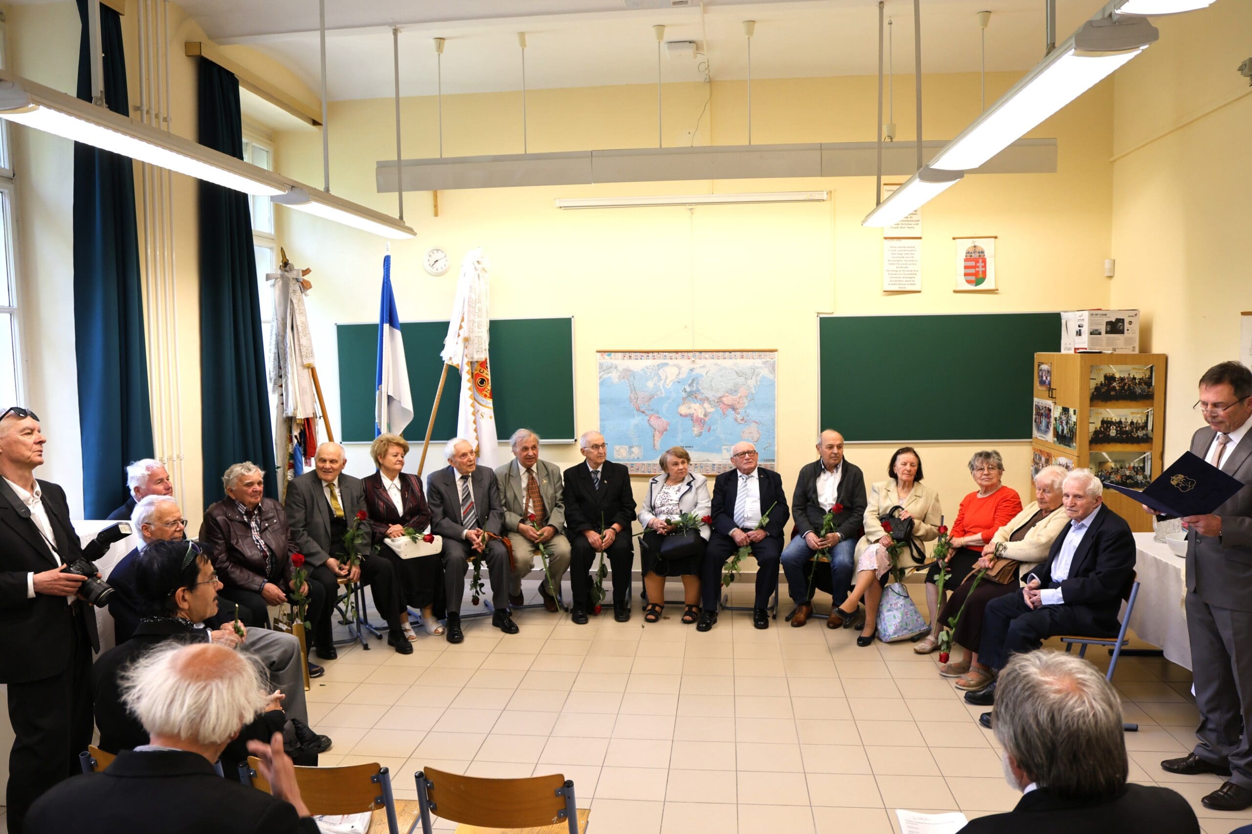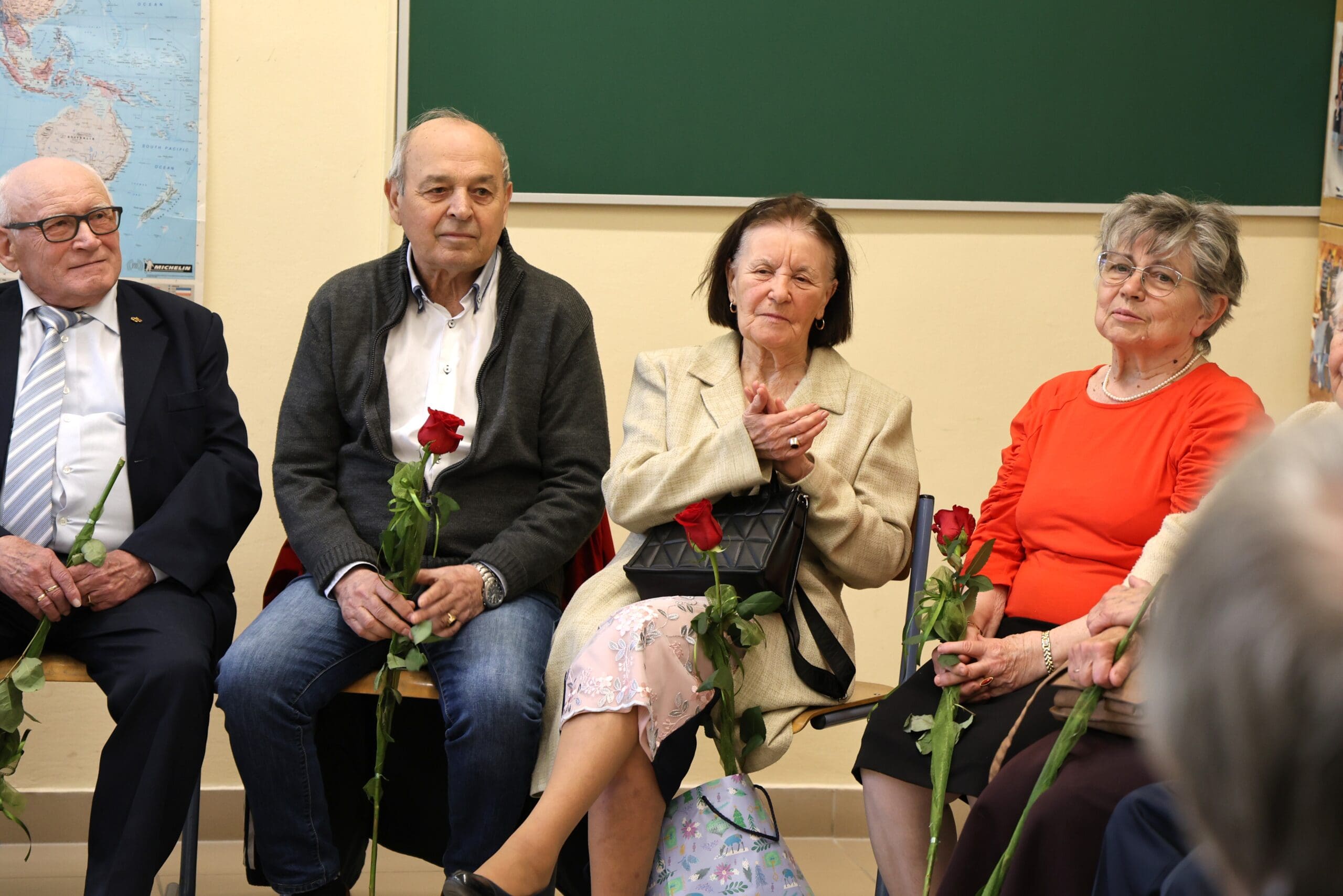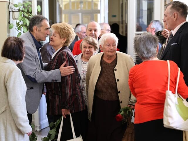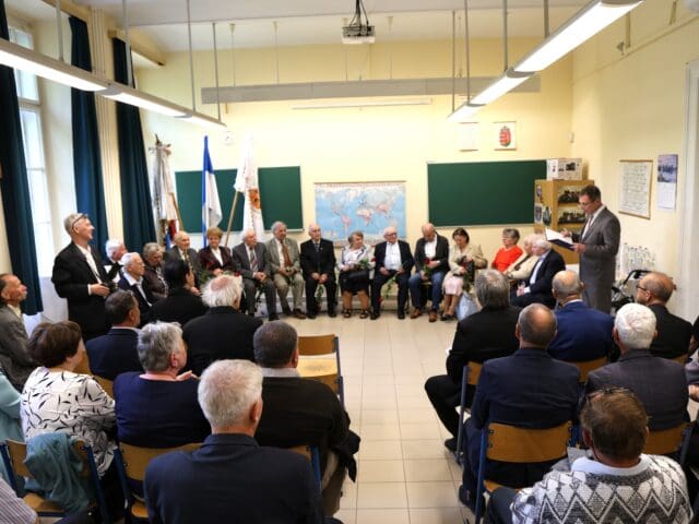 – Amikor érettségiztünk, azt hittük, hogy ötven év múlva már nagyon öregek leszünk. De nézzetek körbe! A mosolyok ugyanazok, a csibészség ott bujkál a szemekben és történetek semmit sem koptak – hangzott el az osztályteremben a köszöntők elején.