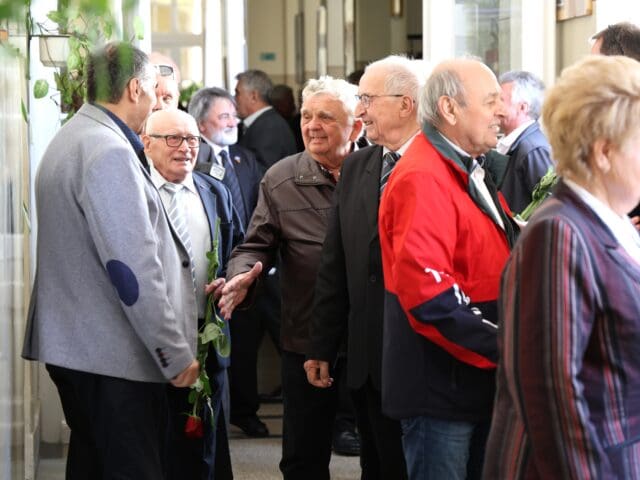 Varga János, a jubileumi esemény egyik főszervezője lapunknak elmondta, hogy külön öröm számára, hogy pedagógusaik – akik között többen már kilencven év felett járnak – ilyen nagy számban tisztelték meg jelenlétükkel a találkozót. Hozzátette: nagyon jó, összetartó évfolyam volt az övék, a kapcsolatot mindig tartották egymással az elmúlt évtizedekben is. Megtudtuk tőle, hogy pezsgő sport- és kulturális élet jellemezte a diákéveiket, amelyek nem nélkülözték az akkoriban egyre népszerűbb diszkók szervezését sem. A Közgésekkel és Mórásokkal havonta egyszer közös bulikat tartottak az egyik kijelölt teremben, amelyek mindig emlékezetesek maradnak számukra. A PG gépészeti emblémájának megalkotásában is részt vettek, többek között erről is örök emlékeket őriz a szívében.