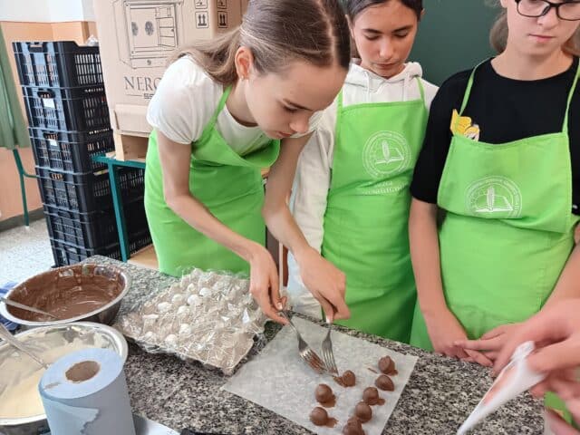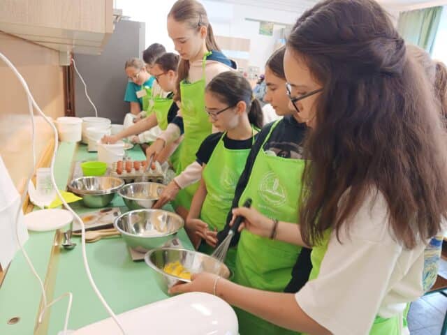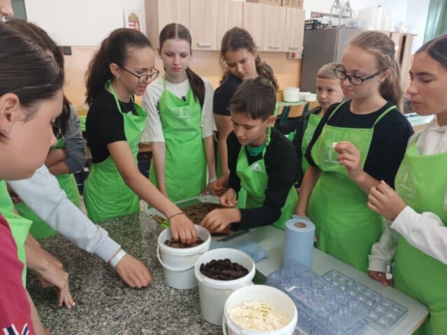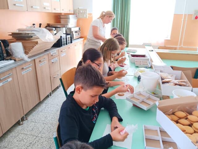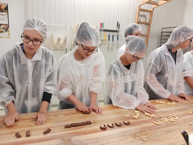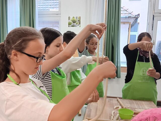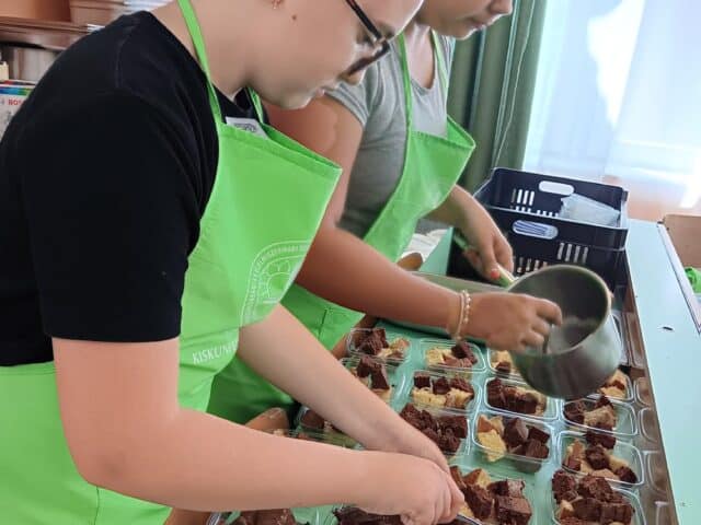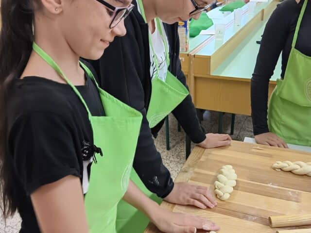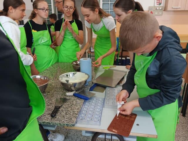 A hét közepére már teljesen összekovácsolódott kis csapatot alkottak a különböző helyekről érkezett felsősök. A reggeli szendvicsek elfogyasztása után már izgatottan várták a P&P Pékáru Kft. üzemlátogatását, ahol a cukrászüzemet mutatta be a tanüzemvezető. Nemcsak üzembemutató volt a program, hanem bekapcsolódhattak a termelésbe is és segédkeztek a cukrászipari termékek elkészítésében, amit nagyon élveztek. Ezt követően az iskolába visszatérve pedig egy kvíz keretében mutathatták meg, hogy milyen sok fontos információt tudtak meg a tanüzemről, az ott folyó termelésről és természetesen a gyakorlati oktatásról. Délután a tanulók izgalmas logikai és kincskereső vetélkedőkkel töltötték az időt. Leginkább a szabadulószobát várták, izgatottak, kíváncsiak voltak. A csapatok sorsolással lettek kialakítva, így még jobban összebarátkozhattak a kis nebulók. Erősítette bennük a csapatszellemet, hogy együtt kereshettek, kutathattak, logikai feladványt fejthettek meg szerda délután. A programok egytől egyig osztatlan sikert arattak a diákok körében, hiszen rendkívül lelkesek és aktívak voltak mindegyik program során. Sajtos baritát sütöttek, miközben mindenki elsajátíthatta a kalácsfonás technikáját képzett szakoktató iránymutatása és segítsége mellett.
