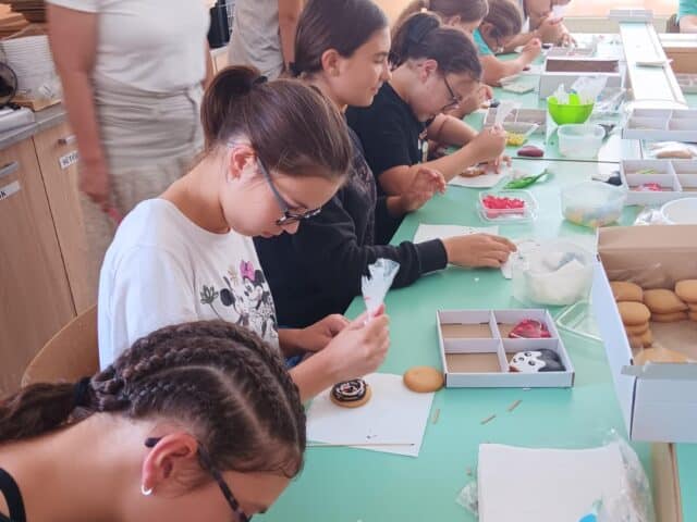 A negyedik napon a cukrászaté volt a főszerep. A délelőtt folyamán piskótát és babapiskótát sütöttek, dobos tortatetőt készítettek szakképzett cukrászok irányításával. Az elkészült piskótából somlói galuskát alkottak, melyet jóízűen meg is ettek. Az ebéd után pedig kis csoportokban kipróbálhatták mézeskalács díszítést, íz-kvízzel tesztelhették, hogy felismerik-e a különböző fűszerféléket és nagy örömükre marcipánfigurákat is formázhattak, melyeket hazavihettek. Szorgos kis kezeik alatt igazi műalkotások születtek.