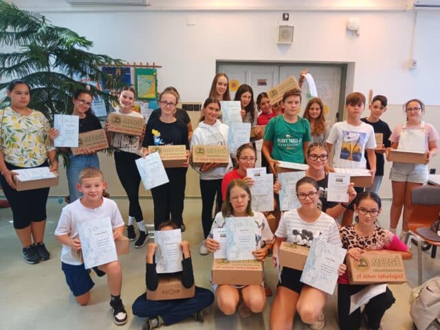 A tábor zárásaként minden résztvevő emléklapot és mezgés ajándékcsomagot kapott ajándékba, melyet az iskola termékeivel –bodza szörp, fűszerpaprika, mezgés kolbász – töltöttünk fel.