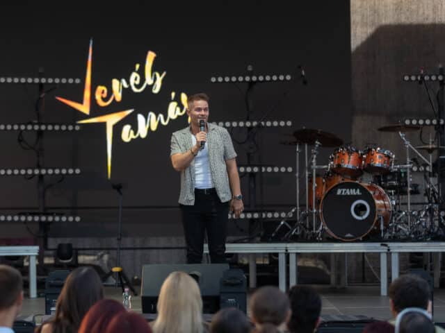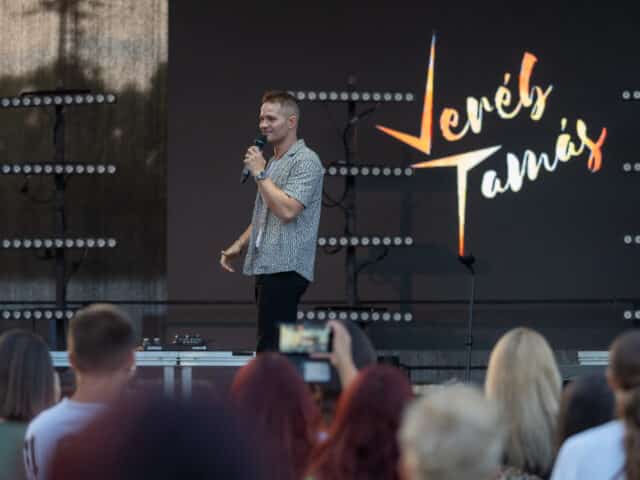 Nem sokkal 19 óra után Veréb Tamás Déryné és Honthy-díjas színész, énekes, dalszerző, a megújuló Erkel Színház társulatának alapító tagja állt színpadra. Neve a 2016-os Sztárban Sztár című showműsorban vált országosan ismertté, amit abban az évadban meg is nyert. Zenei karrierje is ekkor kezdődött, amikor Előttem a kép című dala hetekig vezette a rádiós listákat. Legutóbbi slágerét DR BRS-sel közös feldolgozást, a Hozzám tartozol címűt az év nyári slágerének is választották.