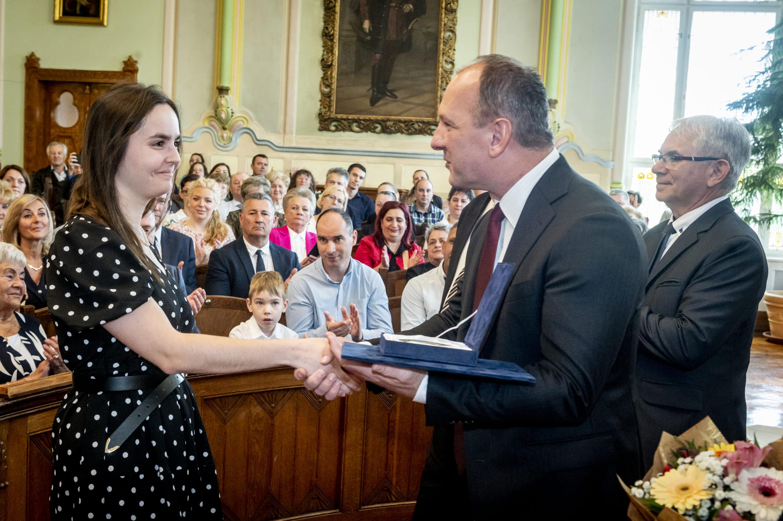 Jankovszki Sára középiskolai tanár az idegennyelv kiemelkedő oktatójának, lelkiismeretes, empatikus, példaértékű pedagógusi és a közösségben végzett munkája elismeréseként.