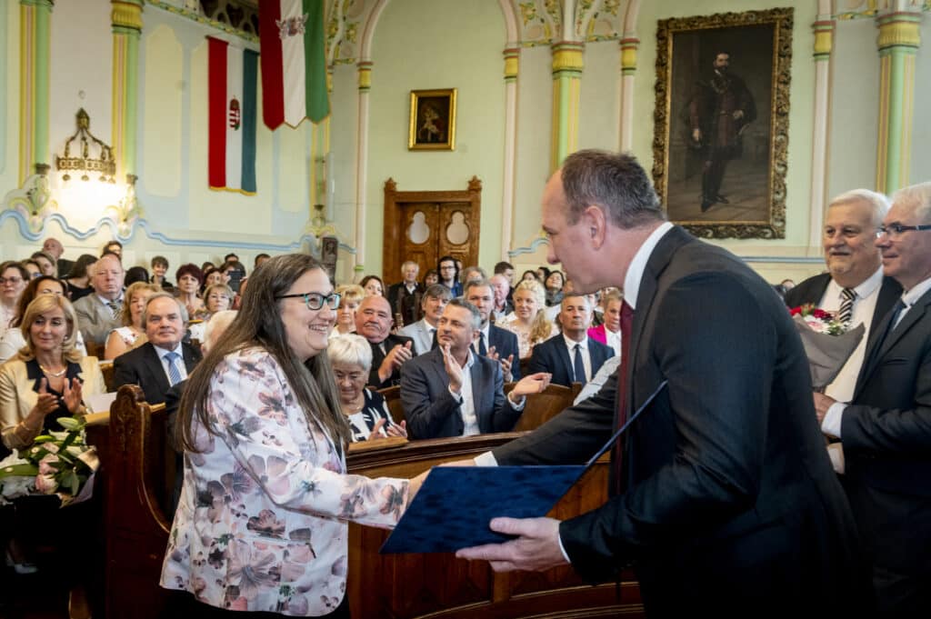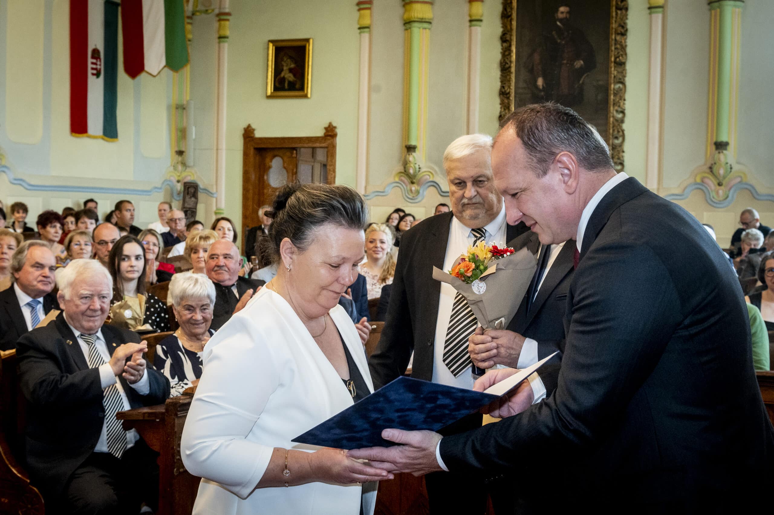 Németh Erzsébet Zsóka gondnokságvezető részére több évtizede a Polgármesteri Hivatal és az önkormányzat közössége érdekében végzett önzetlen munkája, kreatív szakmai tevékenysége elismeréseként Kiskunfélegyháza Város Közszolgálatáért kitüntető díjat ítéltek oda.