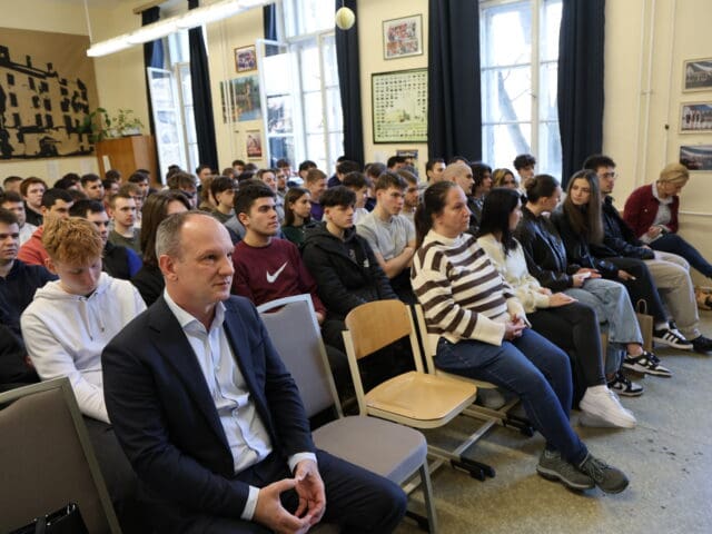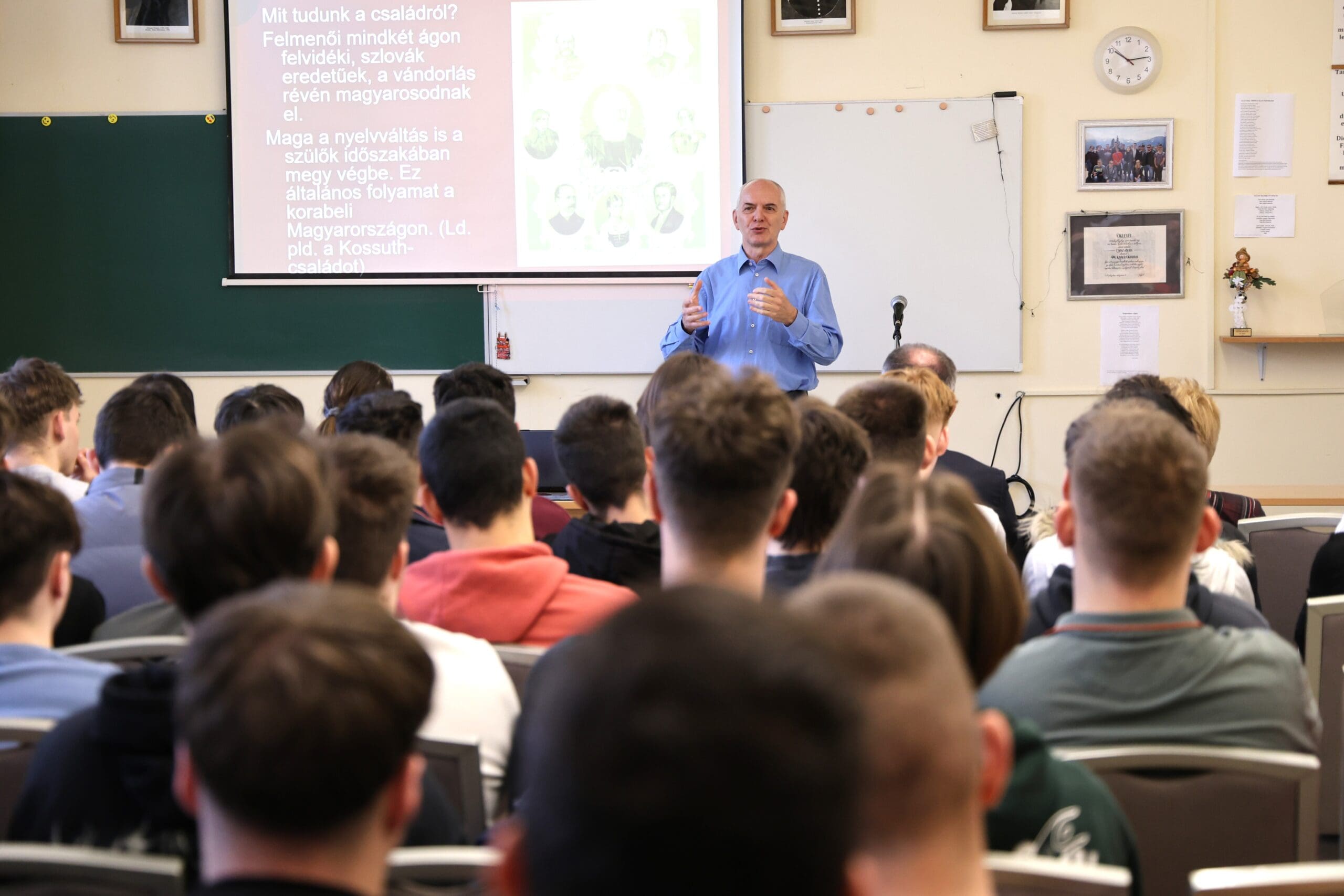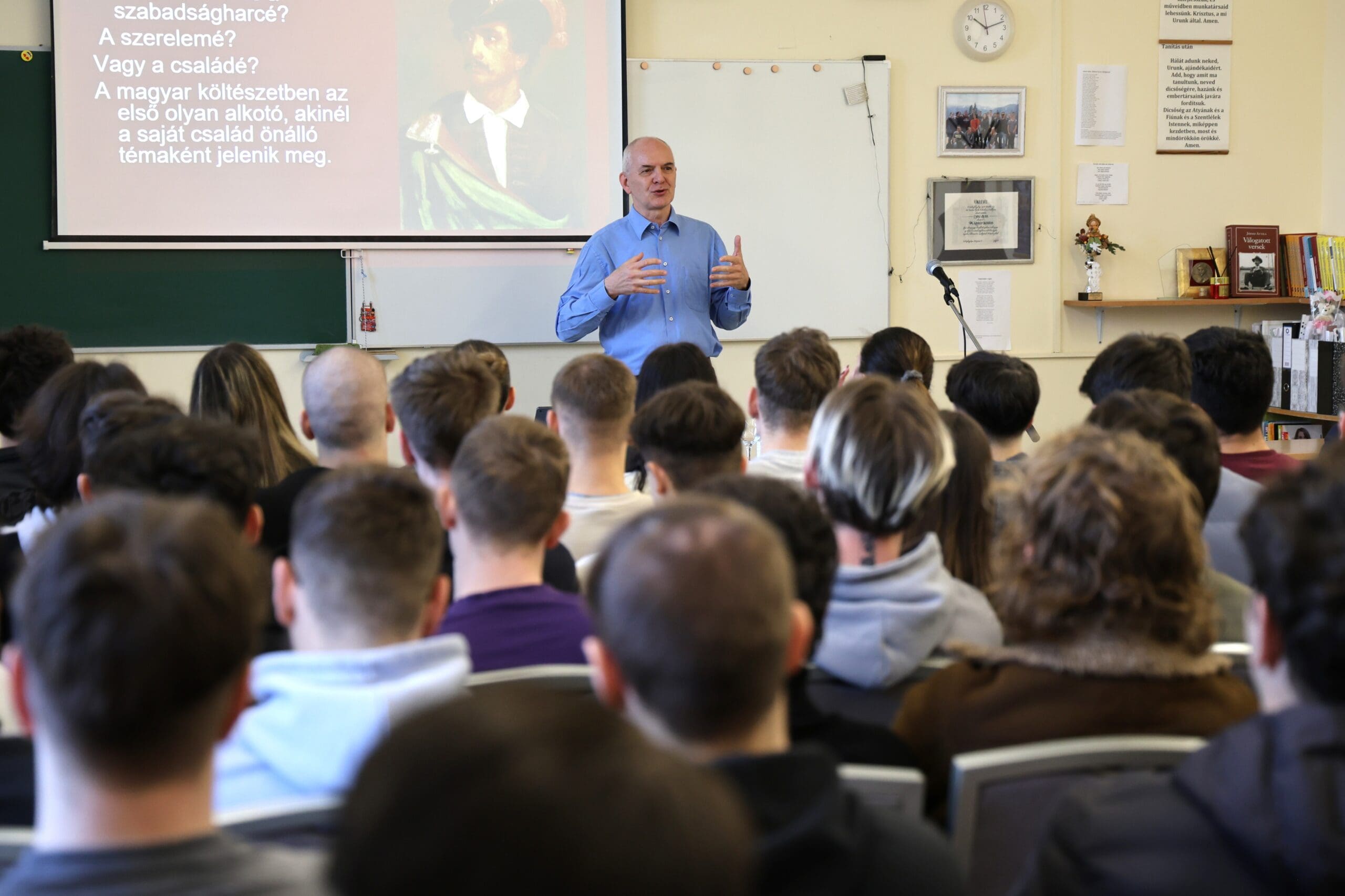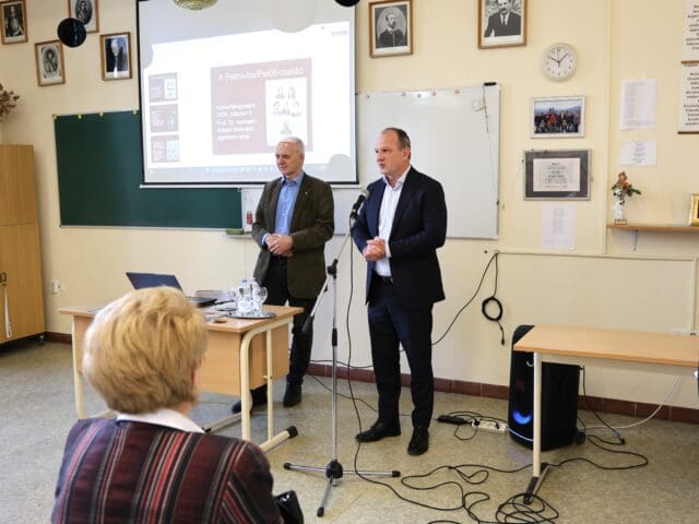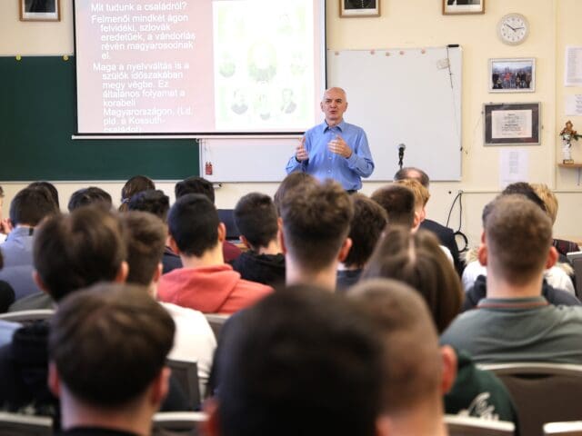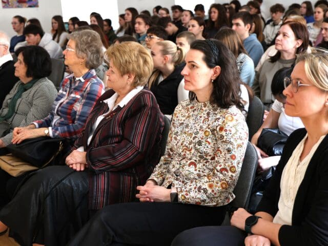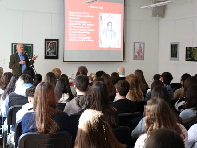 – Remélem, hogy az előadás végén úgy fogtok innen távozni, hogy az érettségihez olyan pluszt kaptok, ami segítségetekre lehet a szóbeli vizsga során – fogalmazott Tóth Gyuláné, majd átadta a szót a Csányi József polgármesternek, a PG öregdiákjának, a Magyar Kultúra Határok Nélkül 2001. Alapítvány alapítójának.