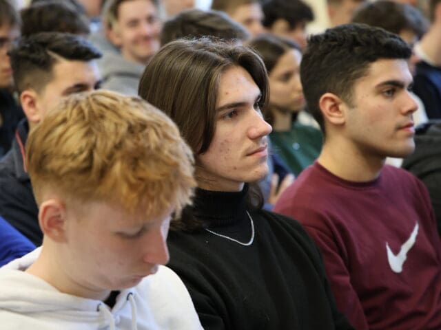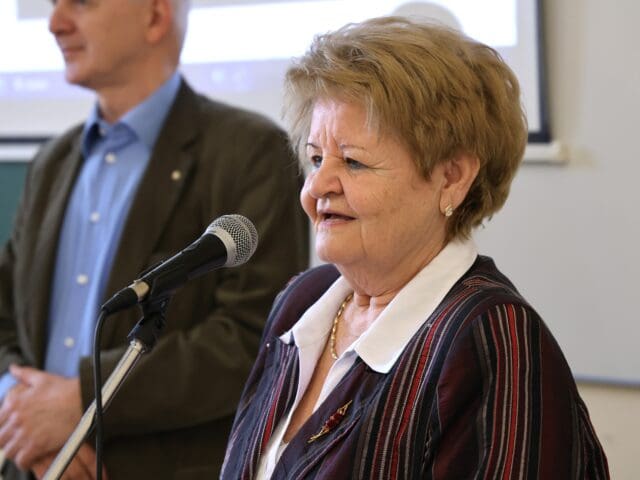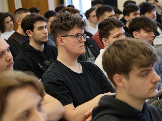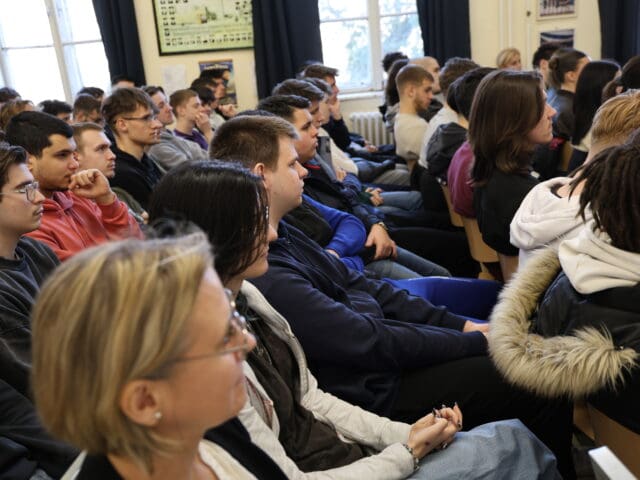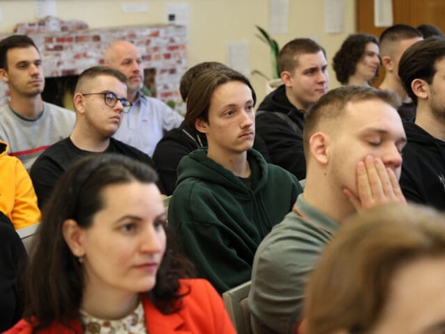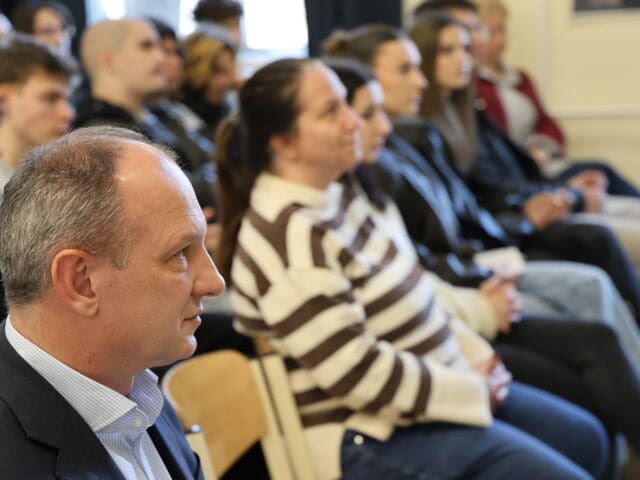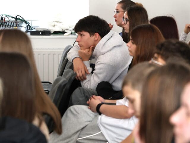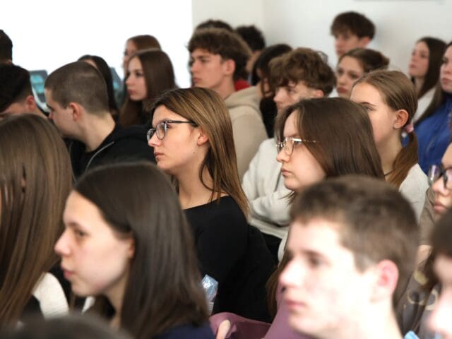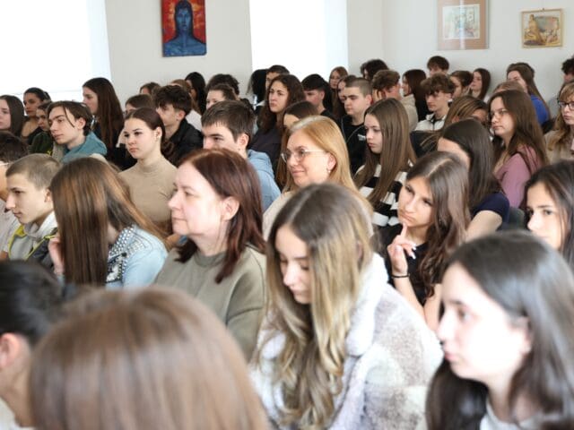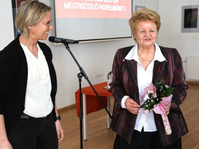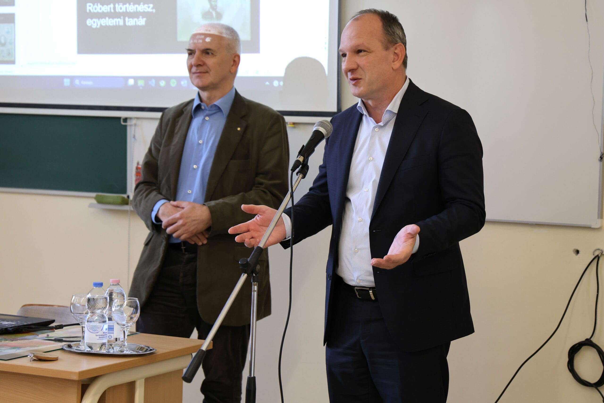 – Remélem, hogy az előadás végén úgy fogtok innen távozni, hogy az érettségihez olyan pluszt kaptok, ami segítségetekre lehet a szóbeli vizsga során – fogalmazott Tóth Gyuláné, majd átadta a szót a Csányi József polgármesternek, a PG öregdiákjának, a Magyar Kultúra Határok Nélkül 2001. Alapítvány alapítójának.