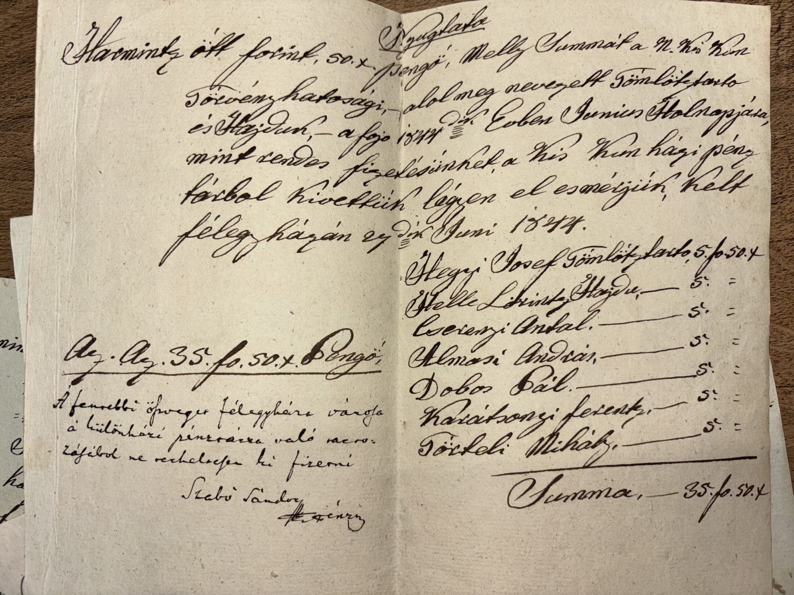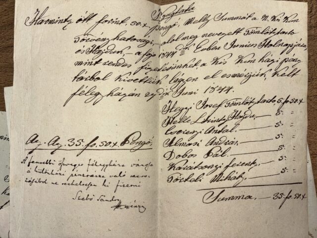 Piszkos anyagiak: nyugták a kerületi tömlöc őreinek fizetségéről (1844)