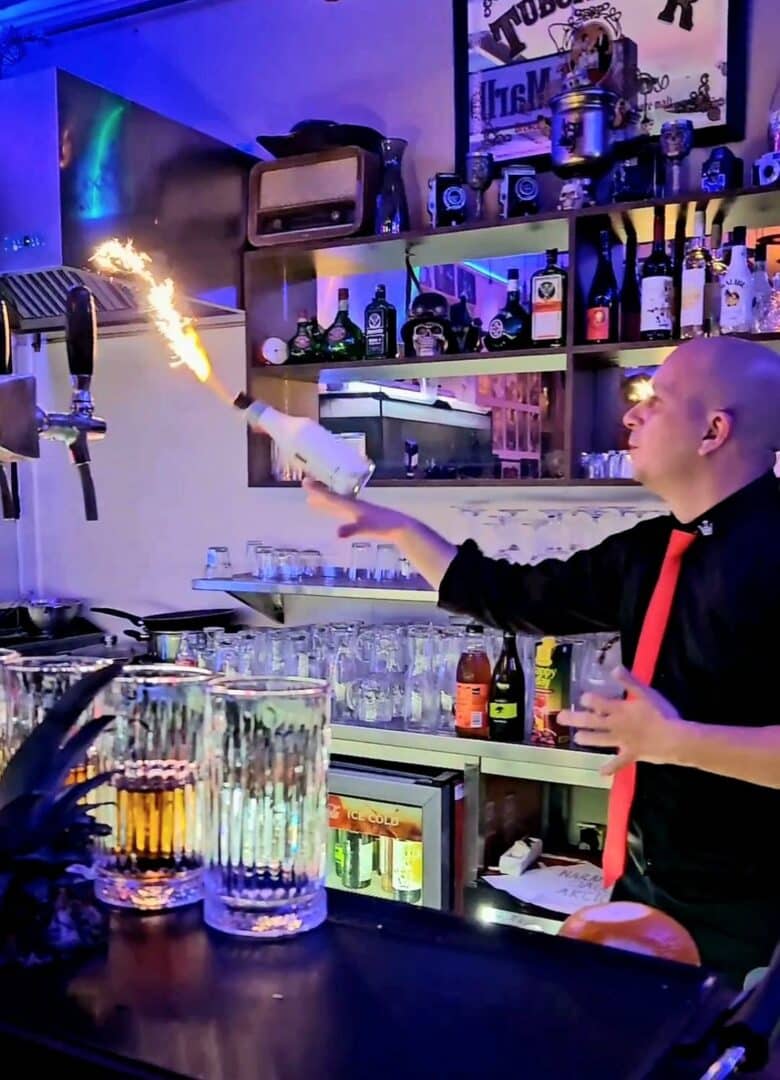 Dolgozott olyan buliban is, ahol egyetlen éjszaka több ezer koktélt rendeltek. Ilyenkor nincs idő meditálni: pörög a shaker, repül a jég, és minden mozdulat tánckoreográfia. A vendégek szeretik a látványt is – üvegforgatás, lángoló italok, füstkupola, rétegezés –, de szerinte az íz az, ami megjegyezteti a poharat.