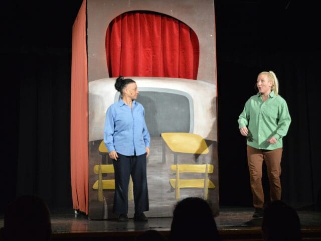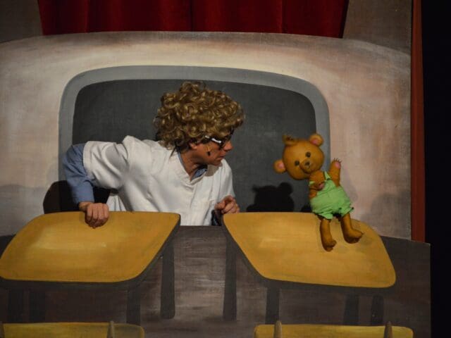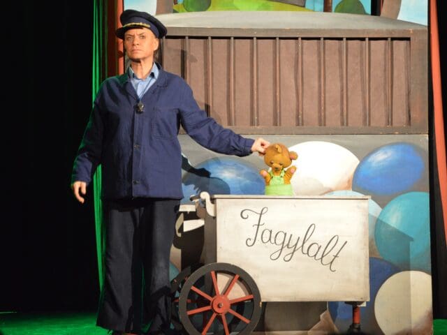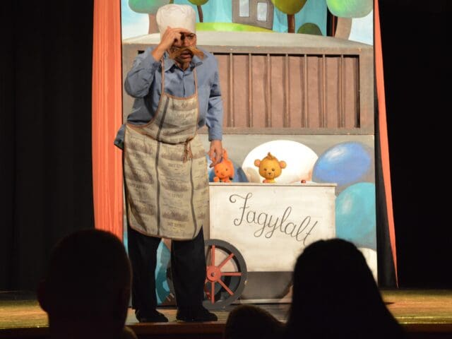 A színházteremben időközben az Aranyszamár Bábszínház Vackor című előadása várta a családokat, amely a szeretnivaló medvebocs csínytevéseit és iskolai kalandjait elevenítette meg, sok humorral és játékossággal, valódi közösségi élményt teremtve a gyermekek számára.