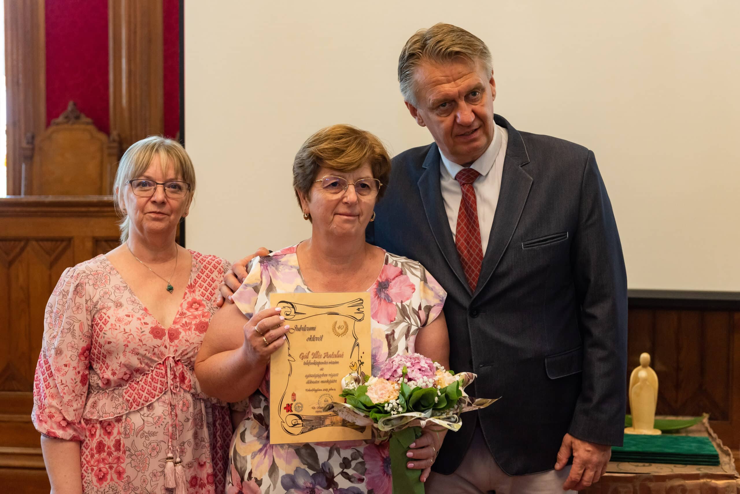 A Magyar Egészségügyi Szakdolgozói Kamara Bács-Kiskun Megyei Területi Szervezetének elismeréseit Csík Julianna, a MESZK megyei elnöke és Gáspár Kinga, a MESZK Kiskunfélegyházi szervezetének elnöke adta át.