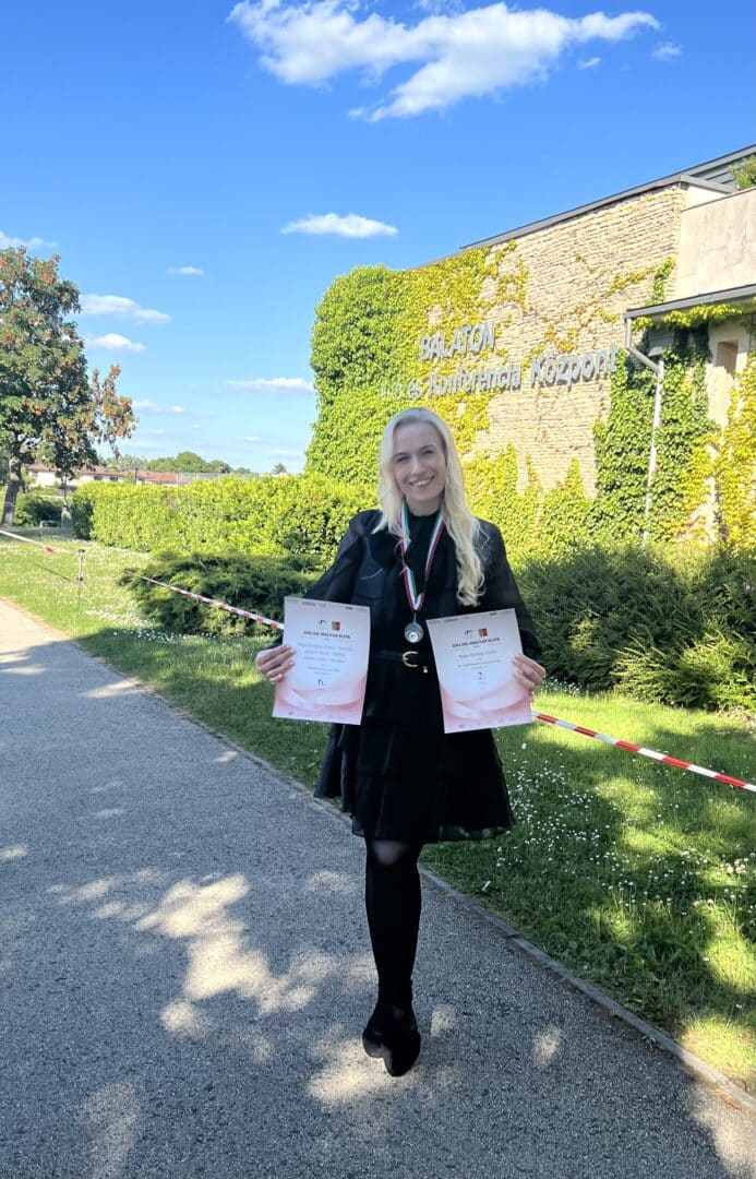 Legutóbb a Magyar Fodrász-Kozmetikus-Körmös Egyesület online fotópályázatán ért el kiváló eredményeket, ahol a Romantikus menyasszonyi konty kategóriában a második helyezést szerezte meg, a Címlapfotó kategóriában pedig az előkelő, hatodik helyen végeztek csapatával.