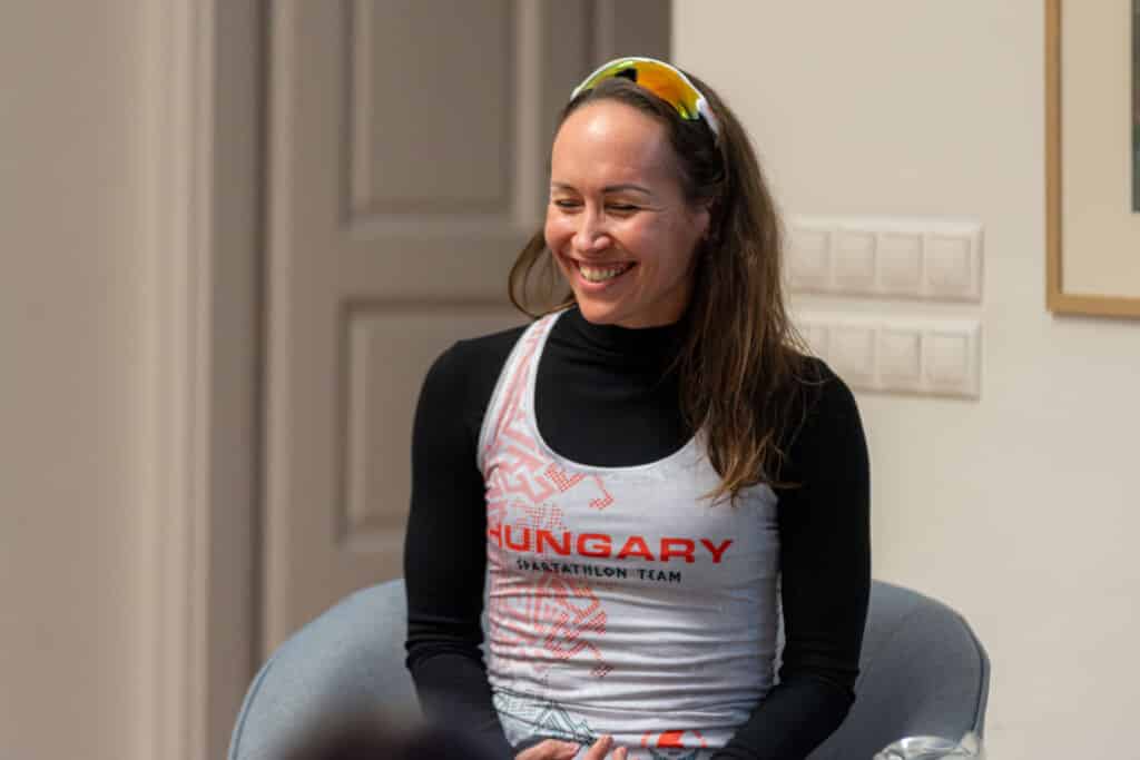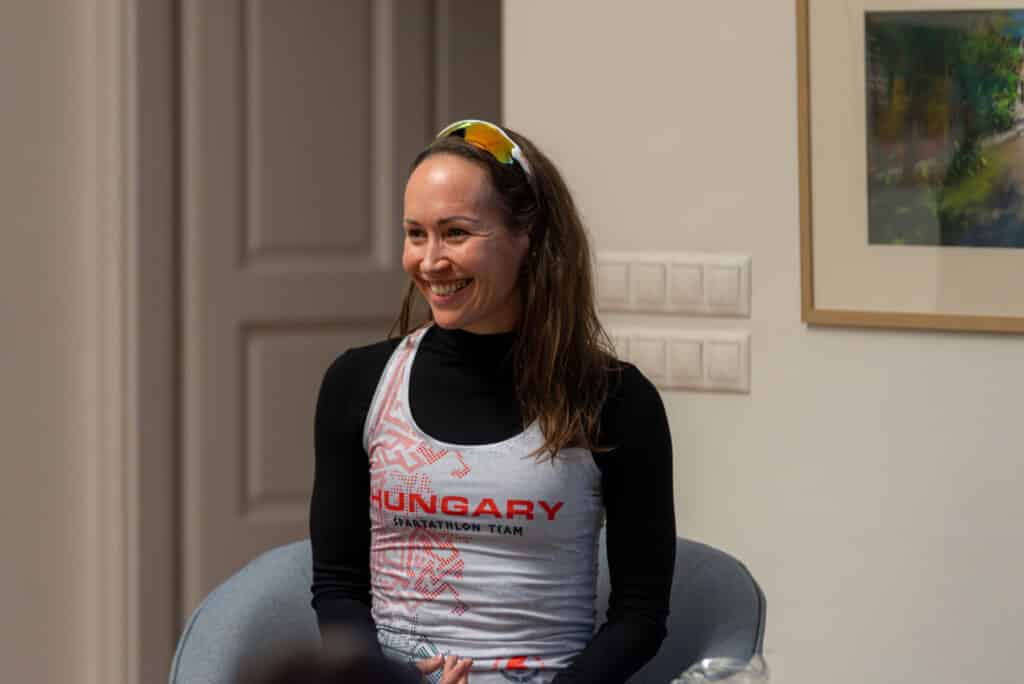 A folytatásban a megjelentek részletes élménybeszámolót hallhattak a 10 éve vágyott verseny részleteiről, amelyről kiderült, hogy a nevezés sem a szokványos módon zajlott. Kitti ugyanis – elmondása szerint – idén már letett arról, hogy valaha is rajthoz állhat Athénban, így párja, Kozma Zsolt vette kezébe az ügyet. A sportoló nevében jelentkezett a megmérettetésre, akinek sejtése sem volt arról, hogy mi zajlik a háta mögött.