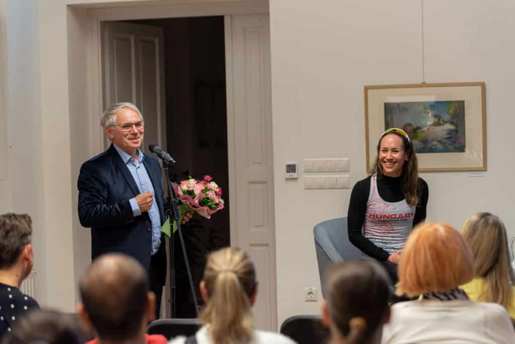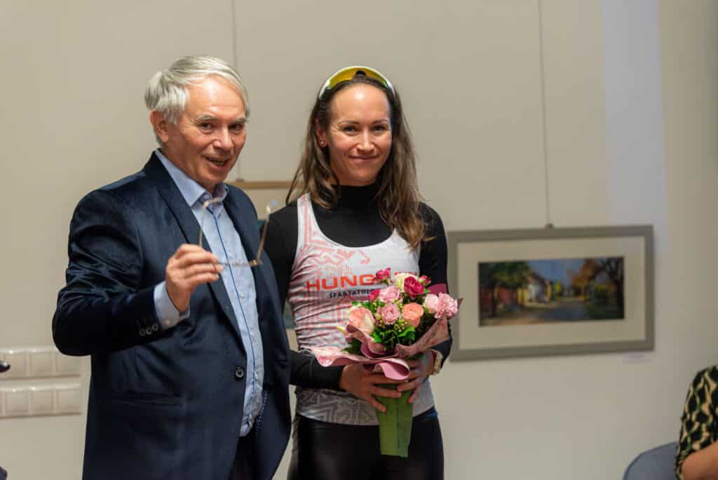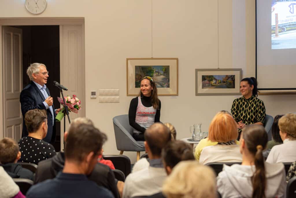 A megjelenteket Abonyi Szilvia könyvtárigazgató köszöntötte, majd az önkormányzat nevében Balla László sportért felelős alpolgármester méltatta a sportoló teljesítményét és nyújtott át Kittinek egy csokor virágot.
