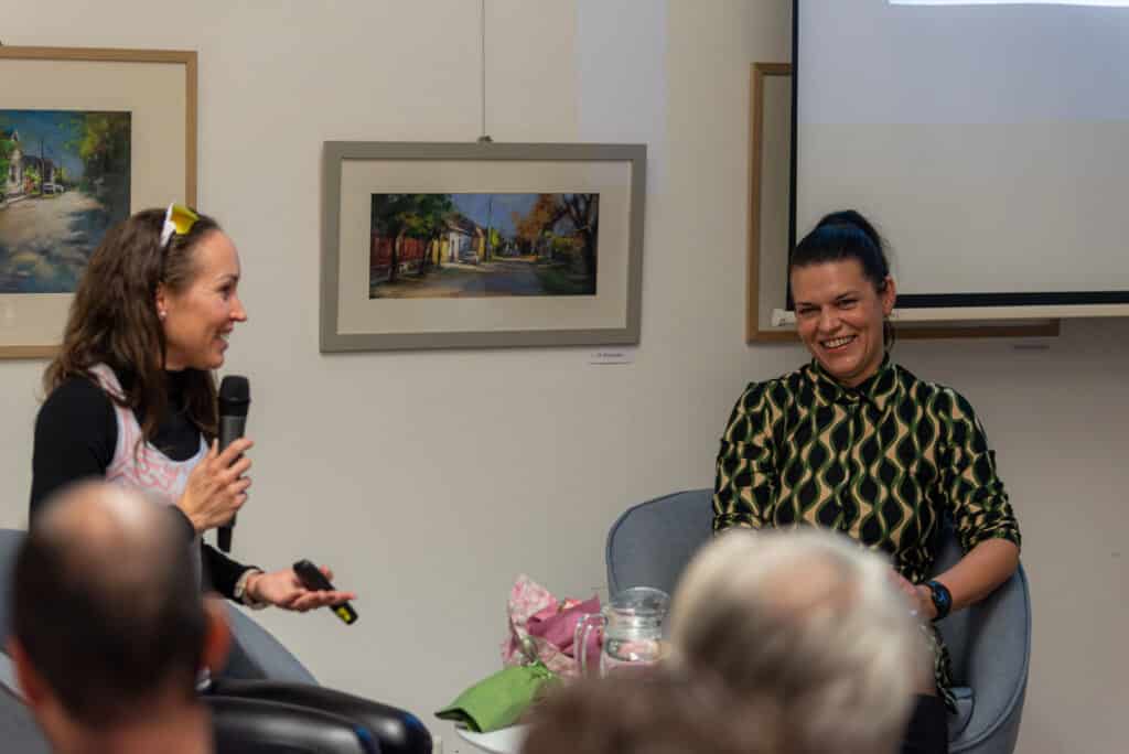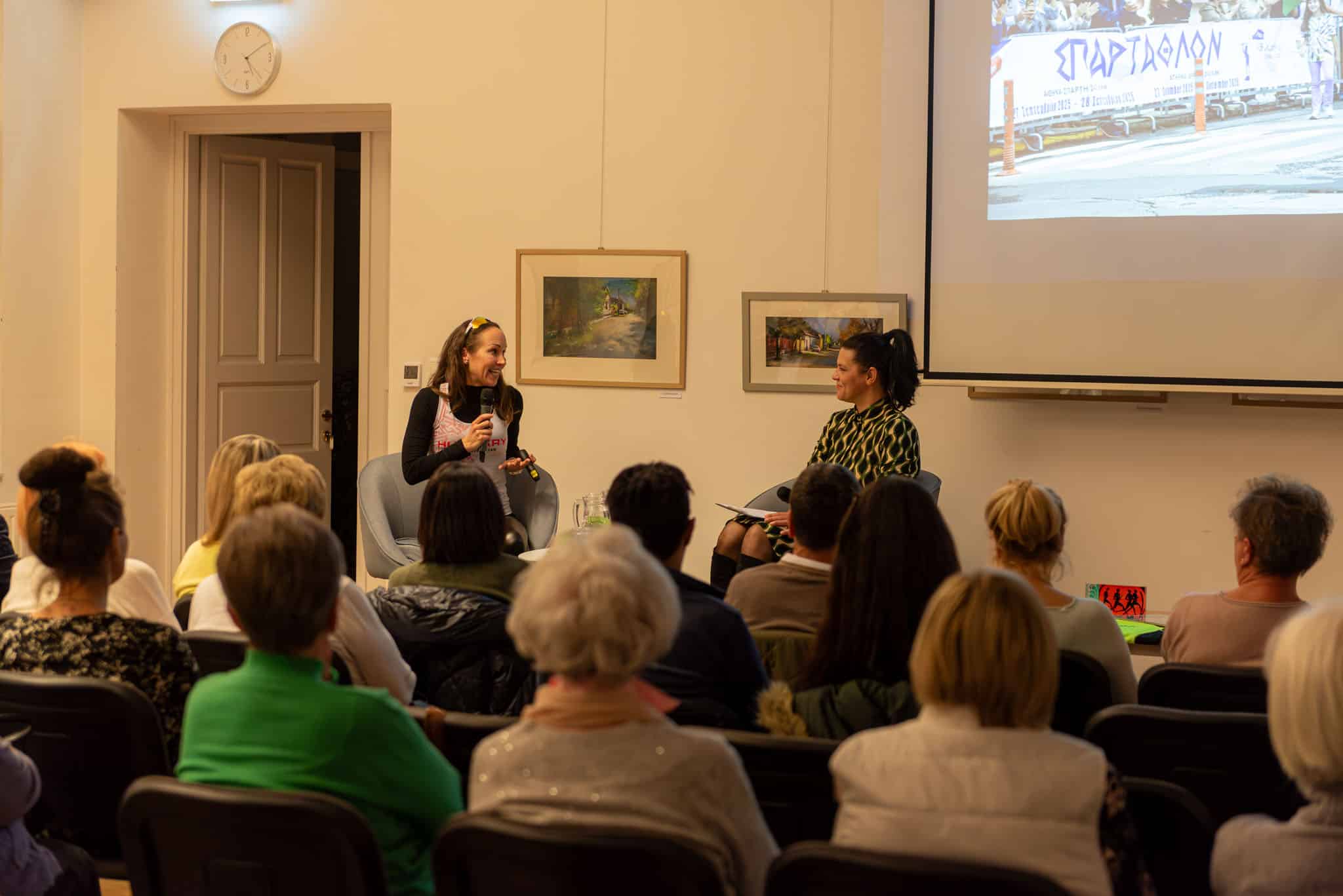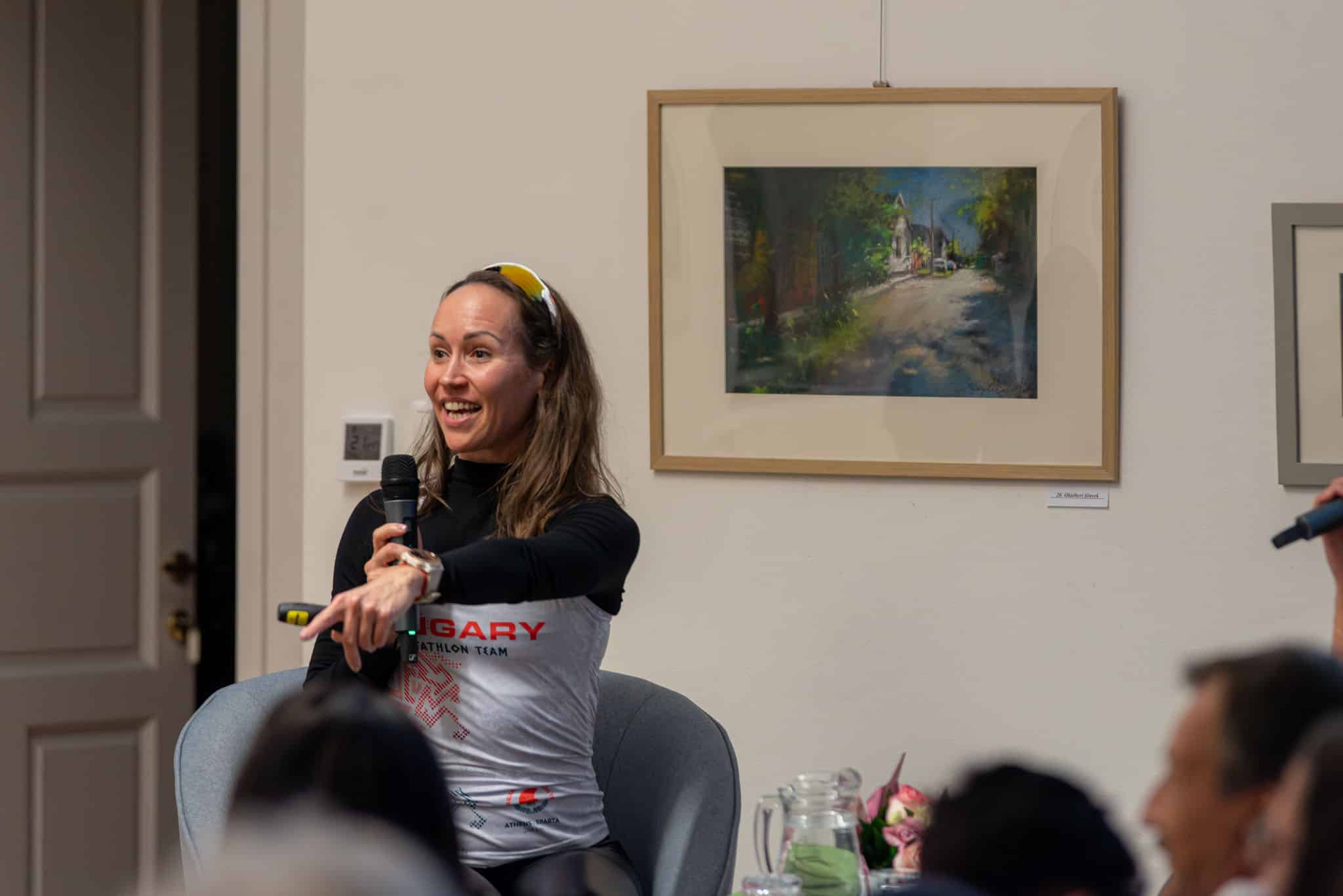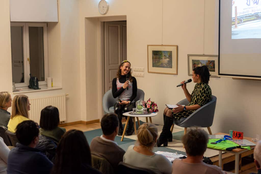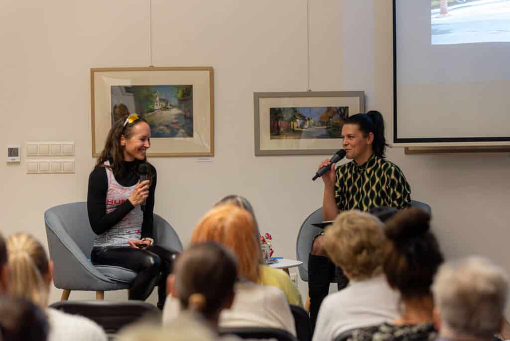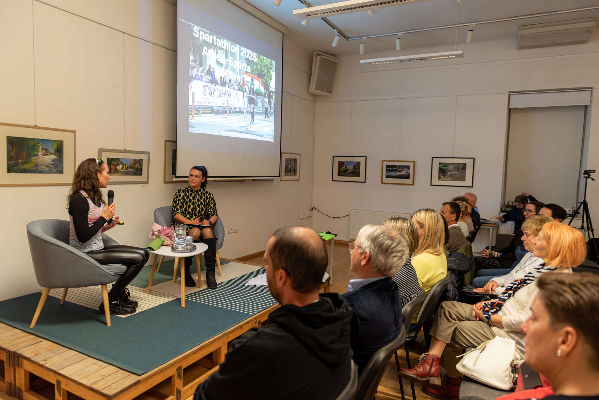 Az est során szó esett a felkészülés részleteiről, a 246 kilométer legnehezebb szakaszairól, a sportoló vívódásairól, fizikai fájdalmairól és a boldogságról, amikor ténylegesen megérinthette az ikonikus Leonidasz szobor lábát. A beszélgetés Kitti előadásmódjának köszönhetően sok nevetéssel, kedves történetekkel tarkított volt, az érdeklődők fotókat és videófilmeket is láthattak az embert próbáló verseny részleteiről.