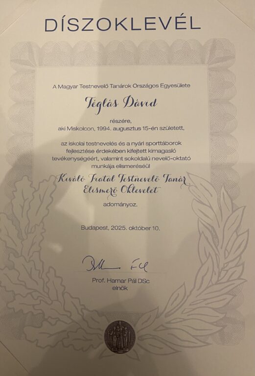 A hagyományokhoz híven, az eseményen különböző elismeréseket is átadtak mindazoknak, akik a testnevelés és sport területén kiemelkedő munkát végeztek. Téglás Dávid, Kiskunfélegyházi József Attila Sportiskolai Általános Iskola pedagógusa Kiváló fiatal testnevelő tanár díjat vehetett át a Magyar Testnevelő Tanárok Országos Egyesületétől.