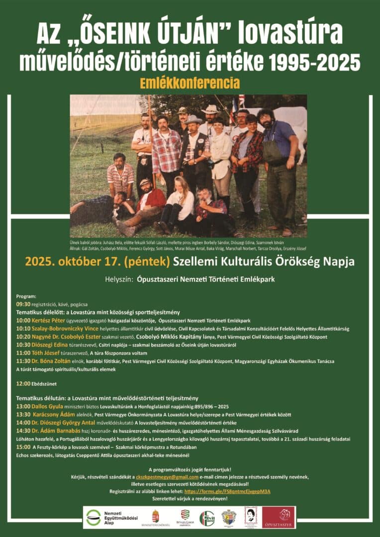 Az uráli őshazától Budapestig tartó út számos fontos állomást érintett külföldön és Magyarországon egyaránt. Mindenhol ünnepségek, megemlékezések sorozata fogadta a hagyományőrzés iránt elkötelezett, civil lovasokat. Az egyik ilyen helyszín volt Ópusztaszer, a Nemzeti Történeti Emlékpark területe, amely a magyarság összetartozásának szimbolikus emlékhelye is egyben. A konferenciát szervező Pest Vármegyei Civil Közösségi Szolgáltató Központ ezért döntött úgy, hogy itt elevenítik fel október 17-én, a Szellemi kulturális örökség napján a három évtizeddel ezelőtti legendás lovastúra eseményeit és eredményeit. Az emlékrendezvényen jelen lesz és köszöntőt mond Szalay-Bobrovniczky Vince, a Miniszterelnökség Civil Kapcsolatok és Társadalmi Konzultációért Felelős helyettes államtitkára.