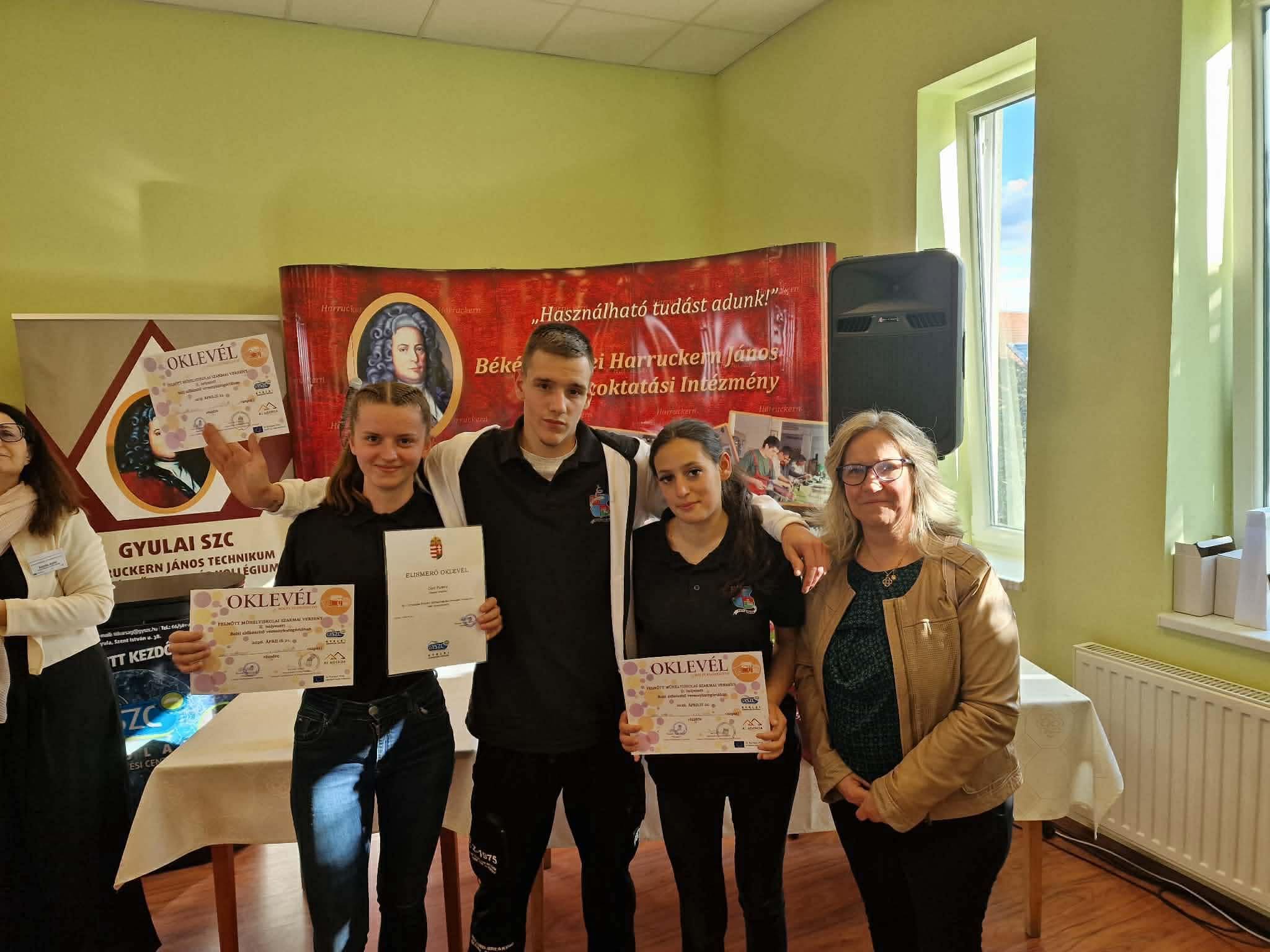 A bolti előkészítők csapata – Jakab Szabina, Tóth András és Varga Bernadett – kiváló teljesítménnyel a második helyet szerezte meg, felkészítőjük Makányné Kis Emese tanárnő.