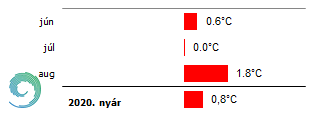 A 2020-as nyár középhőmérsékletének eltérése a sokévi átlagtól