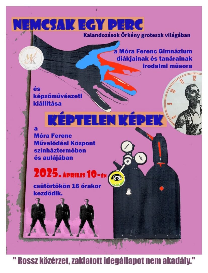 Rosta Eszter lapunk megkeresésére elmondta, hogy a témaválasztásnál elsődleges szempont számukra, hogy tanult tananyag legyen. Természetesen az előadás a tankönyvinél sokkal színesebben, zenei betétekkel és tánccal fűszerezve, egyedi látásmód szerint készült el idén is. Az író, aki költészet napi műsoruk középpontjában van, Örkény István. Egyperceseiből készült bemutató műfaját az abszurd és groteszk határozza meg, mégis vidám előadásra számíthatnak az érdeklődők. A szereplőket tekintve hozzátette, hogy nagyon szerencsések, hiszen évről-évre több önként jelentkező diákkal dolgoznak együtt, illetve az iskolának már van egy olyan tanulói bázisa, akik jártasak a színpad világában, szerepeltek már, akikre mindig lehet számítani. Megtudtuk, hogy idén először a forgatókönyv írása közben pontosan tudták, hogy melyik szerepet kinek adják majd, a diákok személyiségéhez igazították a szövegrészeket. A produkció különlegessége, hogy most az iskola képzőművészeti kiállításával összehangoltan, mintegy megnyitójaként jelenik meg a tárlatnak. A színpadon körülbelül 10 pedagógust és 25 diákot láthatnak majd az érdeklődők.