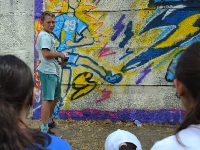 Színes festmények ékesítik a Honvéd Sporttelep betonkerítését. Az alkotások az Ifjúsági Iroda graffiti pályázatának eredményeként születtek meg június 17-én, kedden. A munkálatokban iskolák és magánszemélyek is részt vettek, a festmények sorát a jövőben bővíteni szeretnék. A programot szakmailag mentorálta Tóth Tamás, a Holló László Képzőművész Kör grafikai szakkörének vezetője.