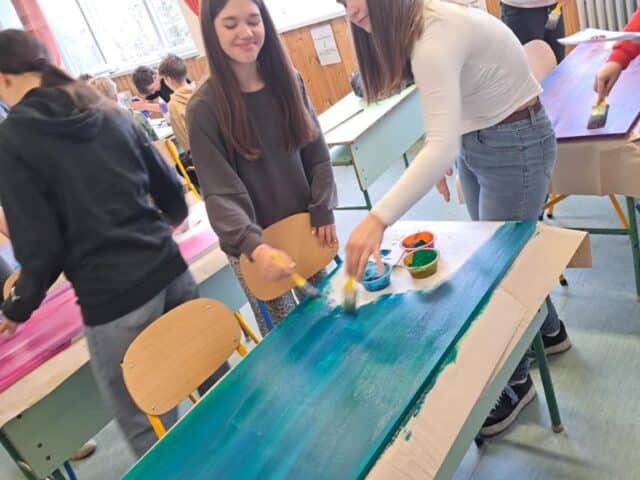 Az ötlet mögött Tarjányi Xénia művésztanárnő áll, aki a 7.a (jövőbeni 8.a) osztály diákjait hívta közös munkára. A gyerekek lelkesen ragadtak ecsetet, és saját kezűleg festették újra a padokat – színes, vidám mintákat és egyedi megoldásokat álmodva meg. A munkálatokban az iskola karbantartói is segítettek, így a kreativitás és a szakértelem tökéletes párost alkotott. Az eredmény pedig önmagáért beszél: a tanterem padjai nemcsak újak, de egyben személyesebbek, barátságosabbak is lettek. A diákok szeptembertől olyan környezetben tanulhatnak majd, ahol a falak között ott a saját kézjegyük is – ez pedig minden bizonnyal még motiválóbbá teszi a mindennapi iskolai munkát – mondta el Szunyi Anikó, az intézmény igazgatója.