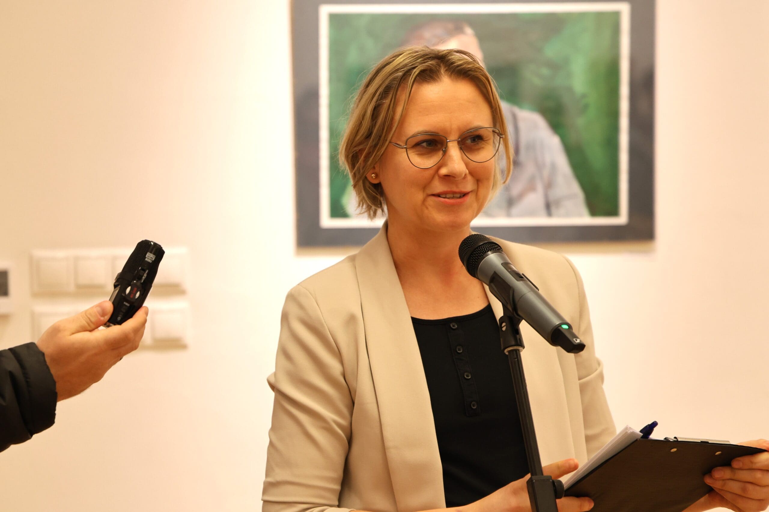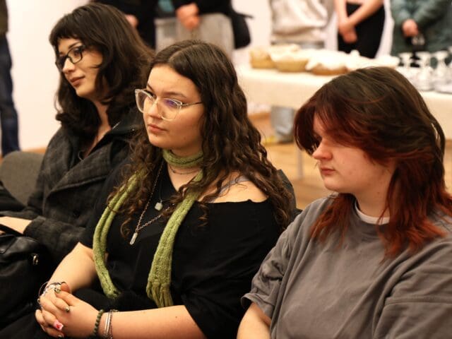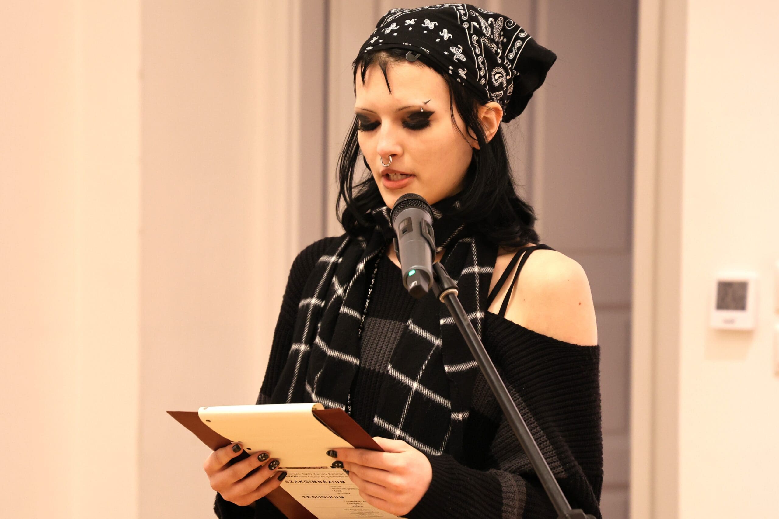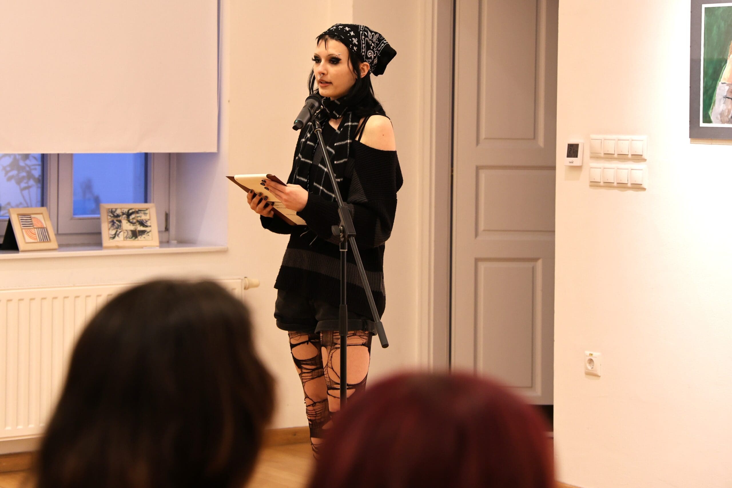 Abonyi Szilvia könyvtárigazgató köszöntője után a kiállítást – Molnár István művésztanár gondolatainak tolmácsolásával – tanítványa, Szabados Eszter nyitotta meg.