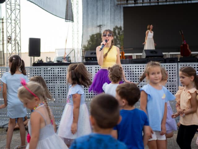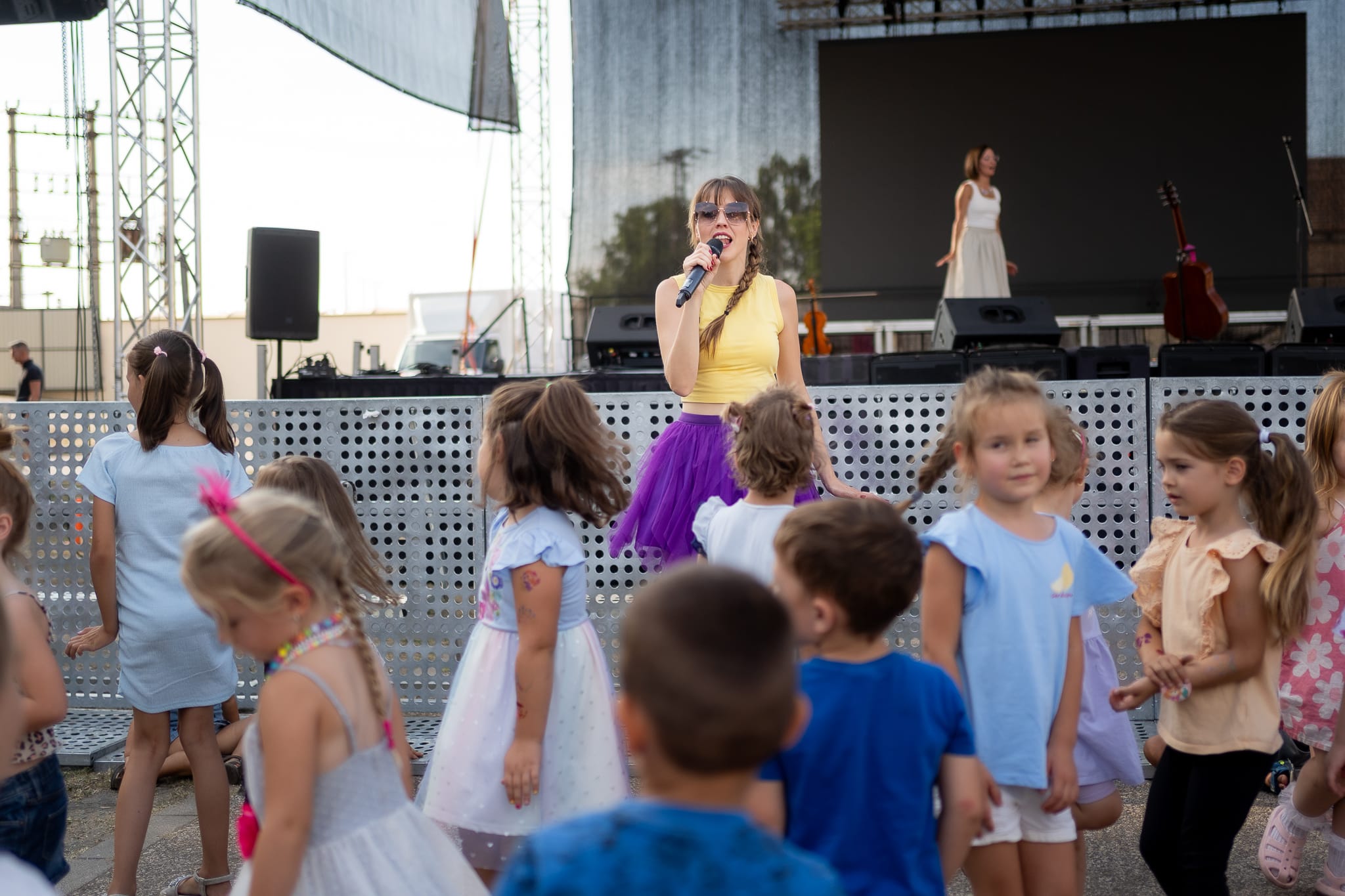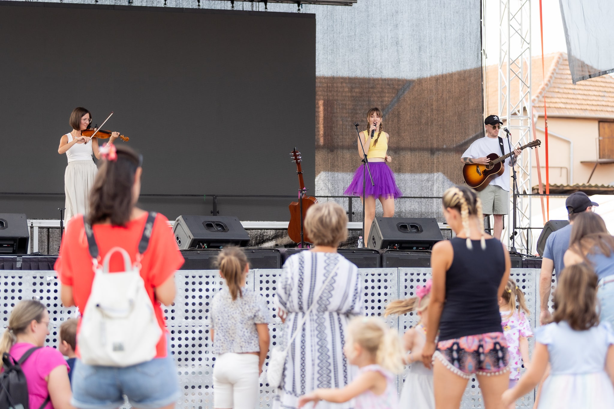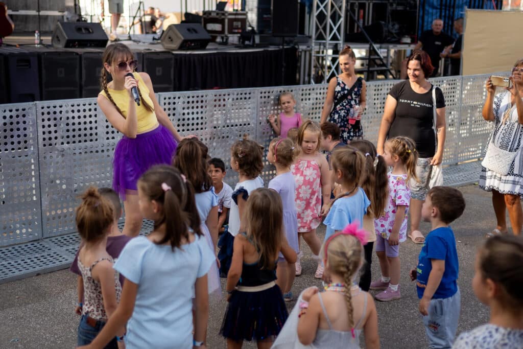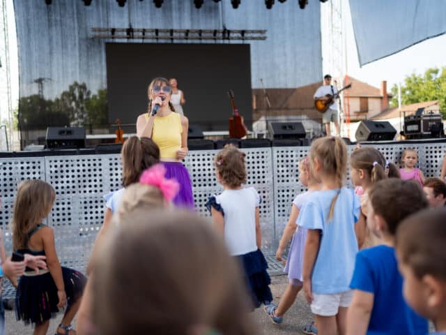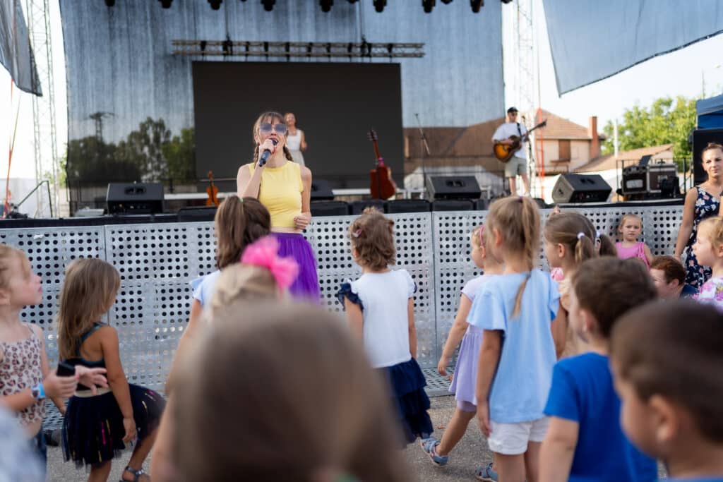 A táncosok után a háromszoros Fonogram-díjas énekesnő, dalszerző Kovácsovics Fruzsina és zenekarának gyermekműsora következett, a legkisebbek nagy örömére.