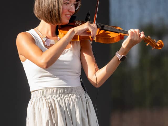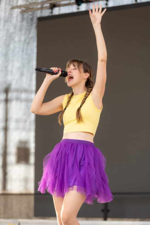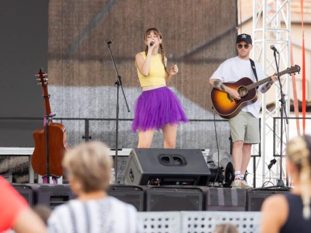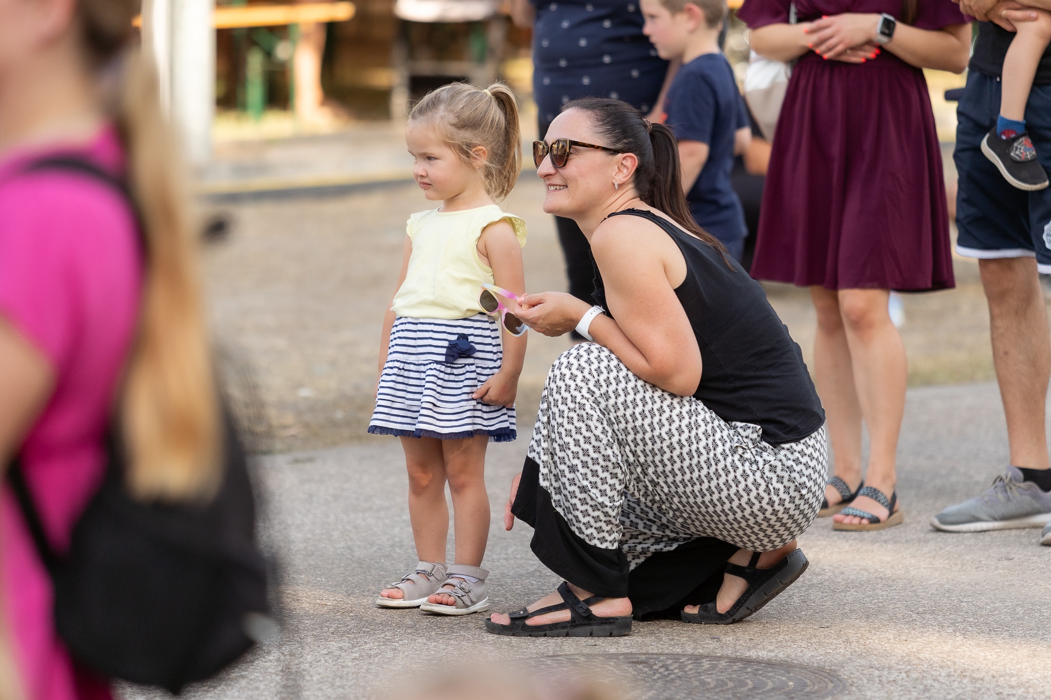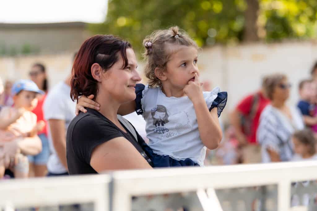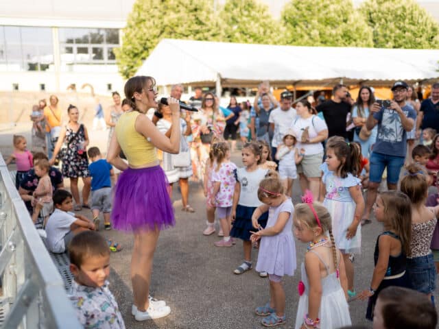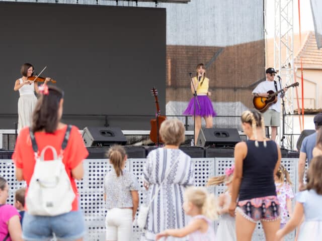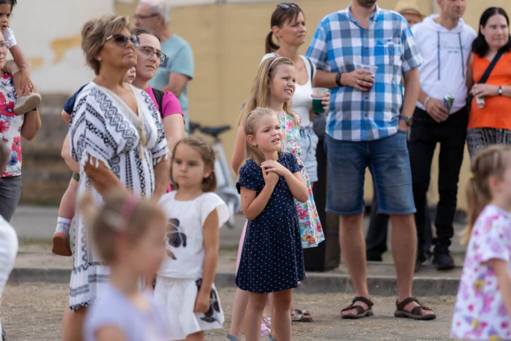 A táncosok után a háromszoros Fonogram-díjas énekesnő, dalszerző Kovácsovics Fruzsina és zenekarának gyermekműsora következett, a legkisebbek nagy örömére.