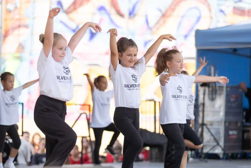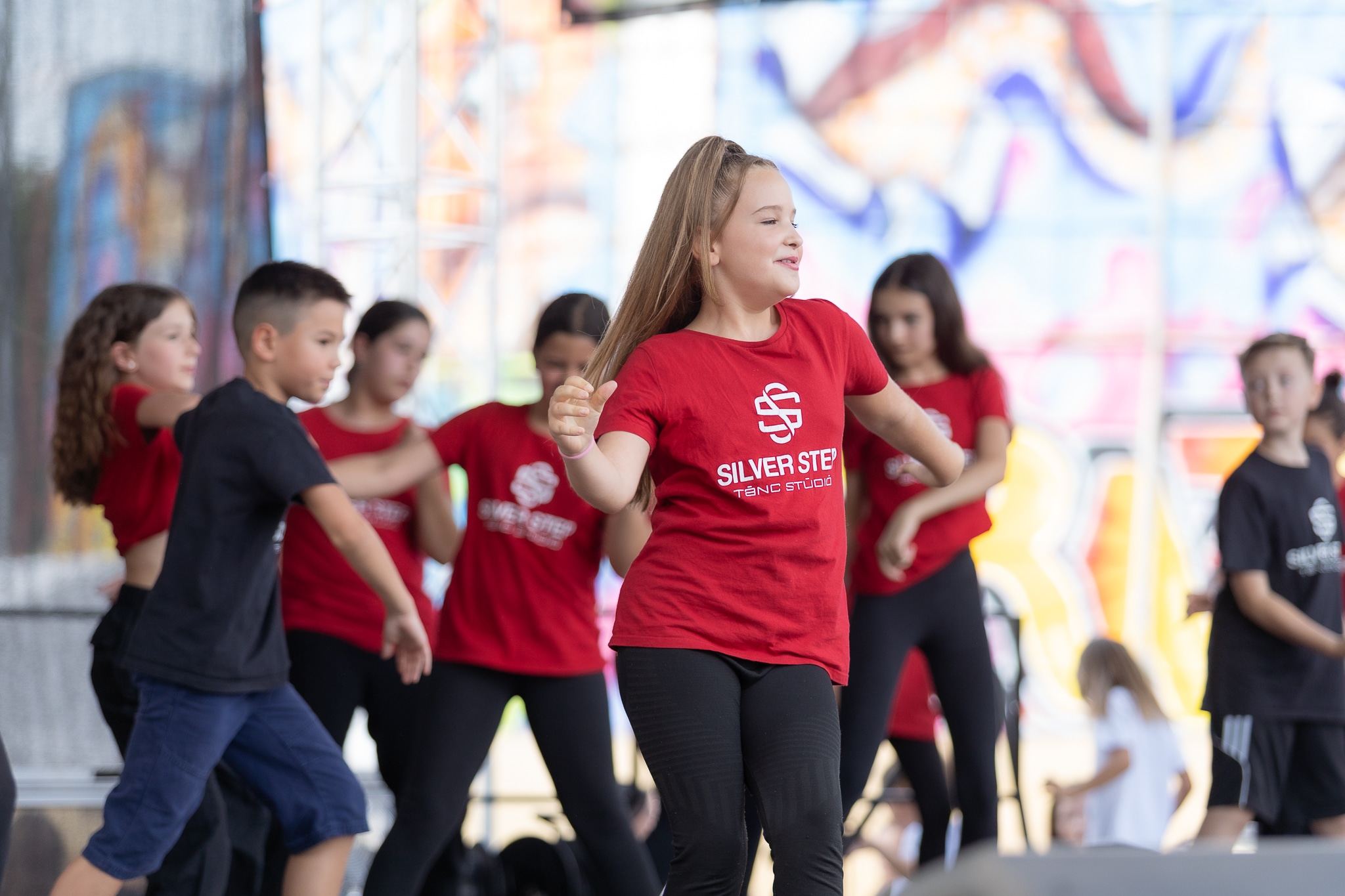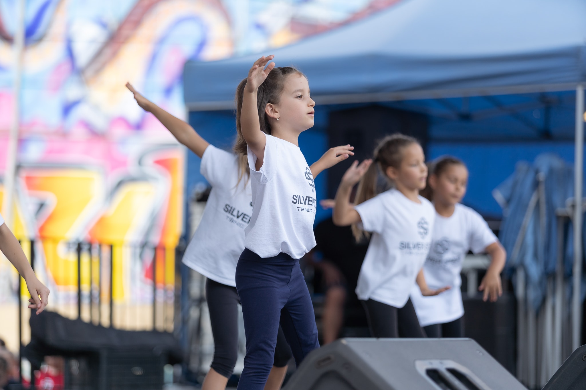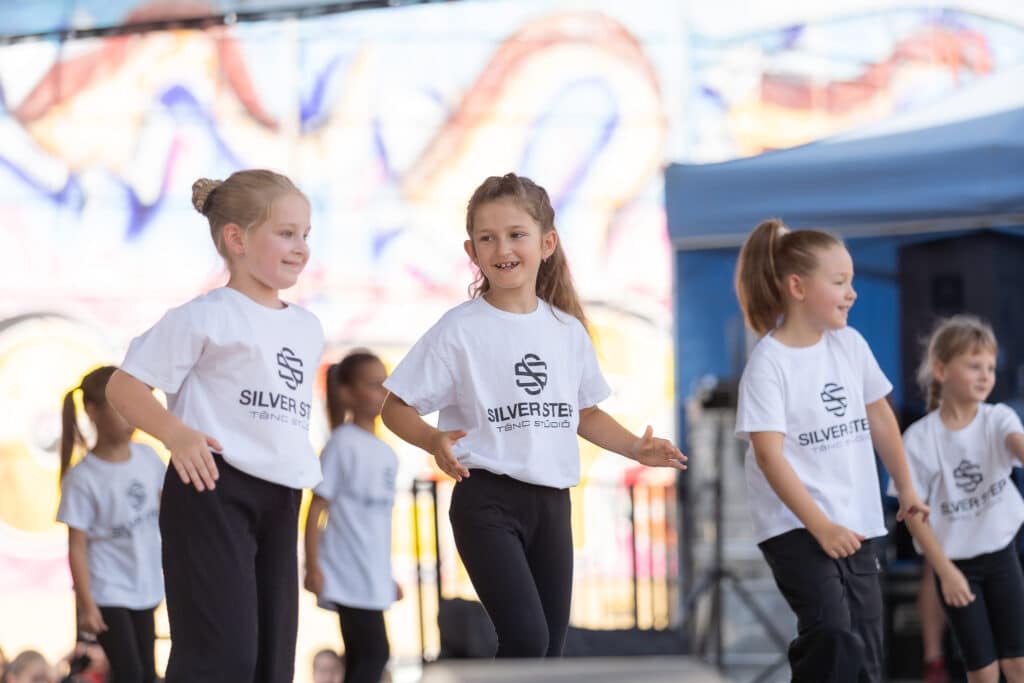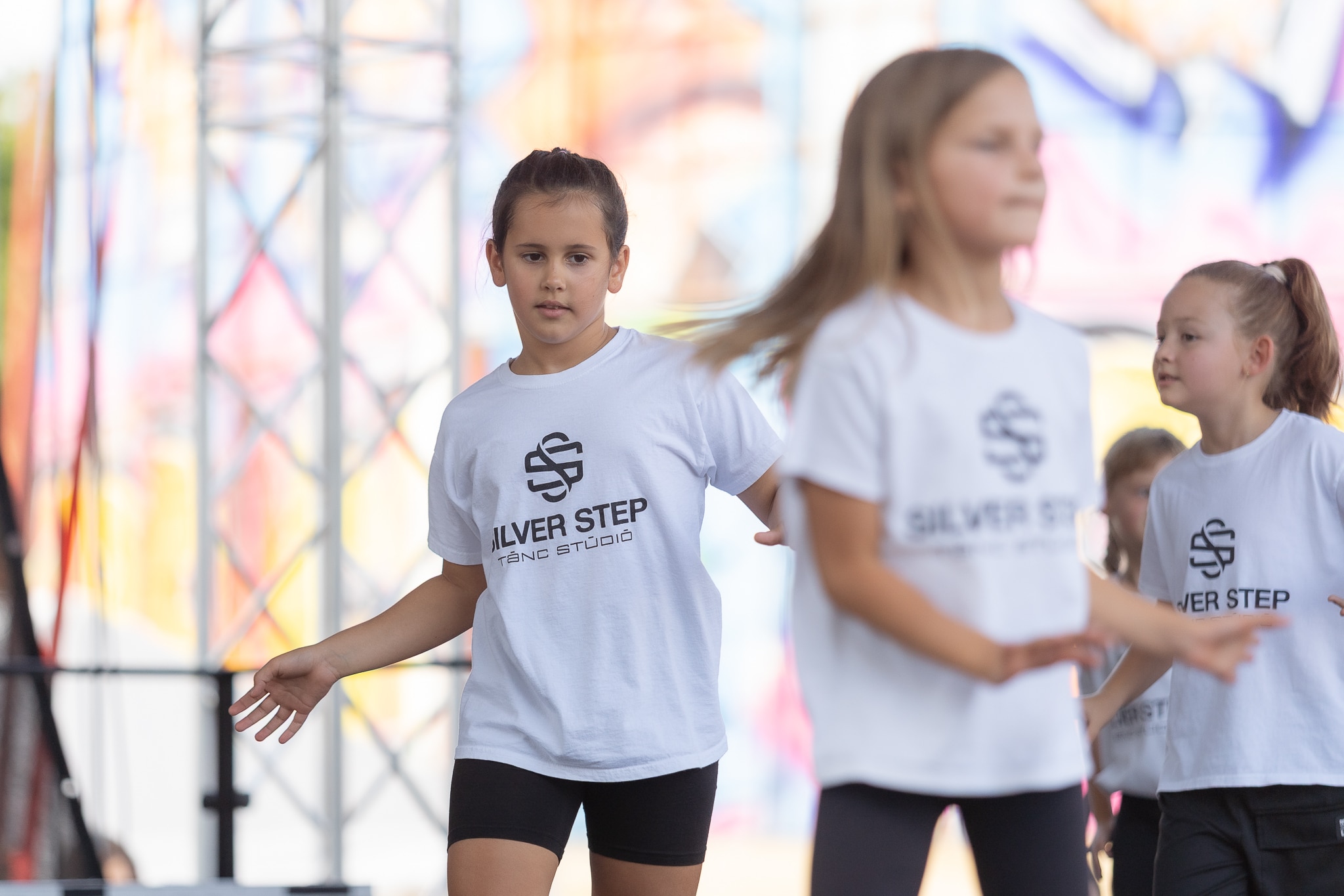 A Silver Step Táncstúdió növendékeinek bemutatójával kezdődött a szerda délutáni nagyszínpadi programsor a sportcsarnok parkolójában.