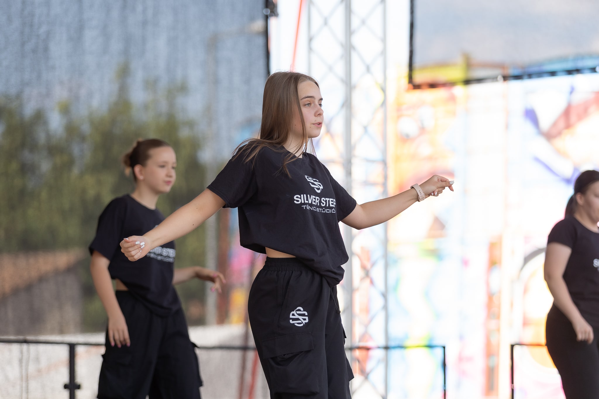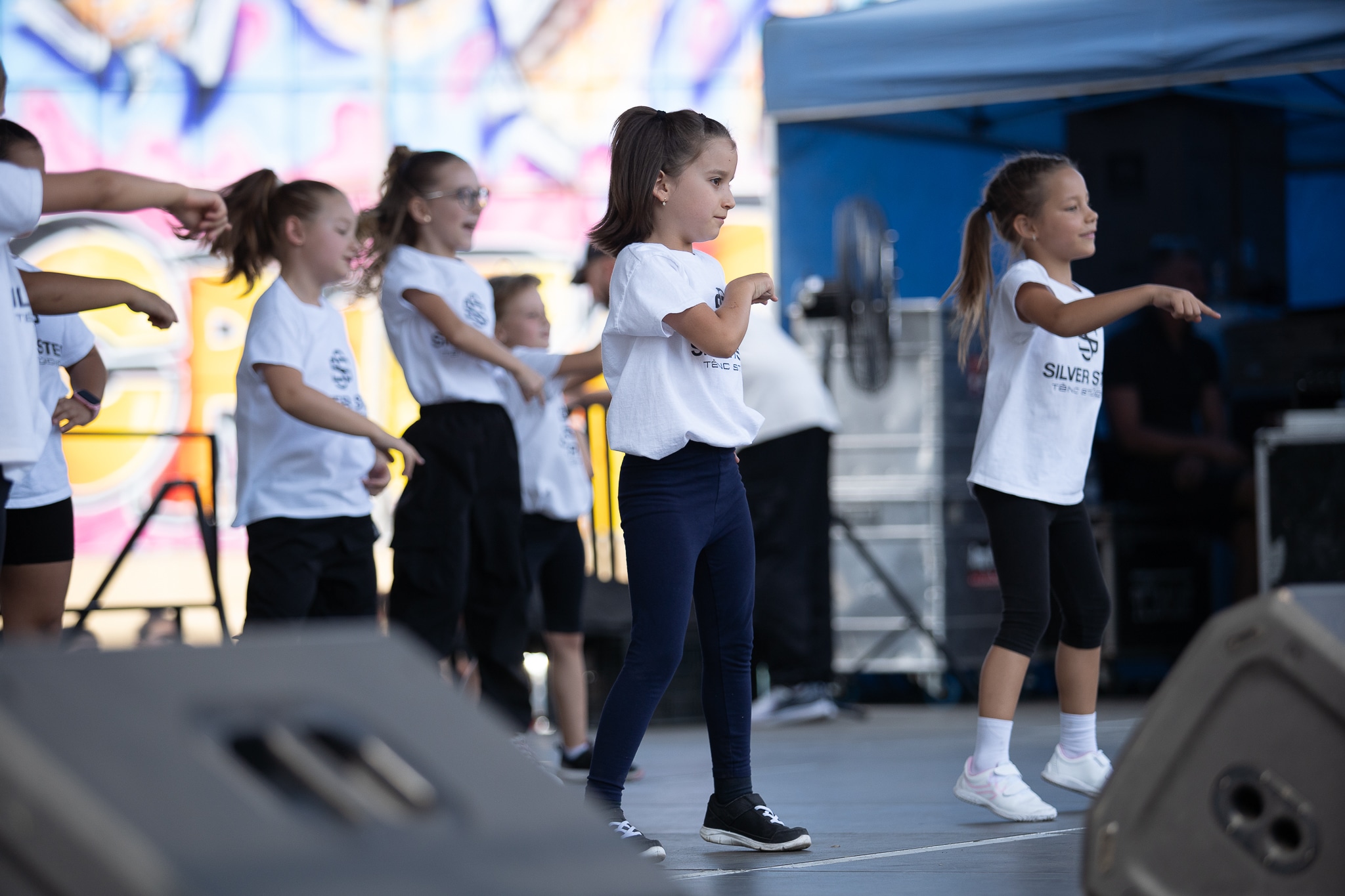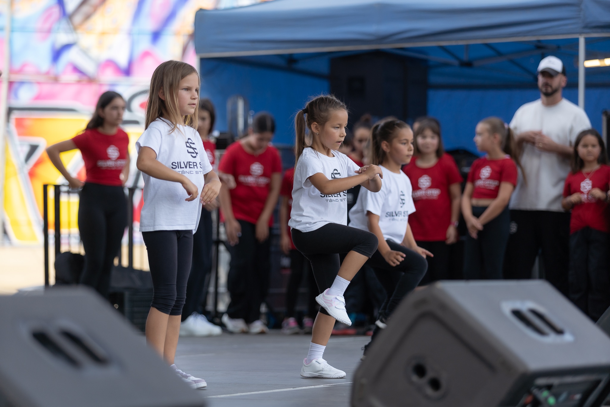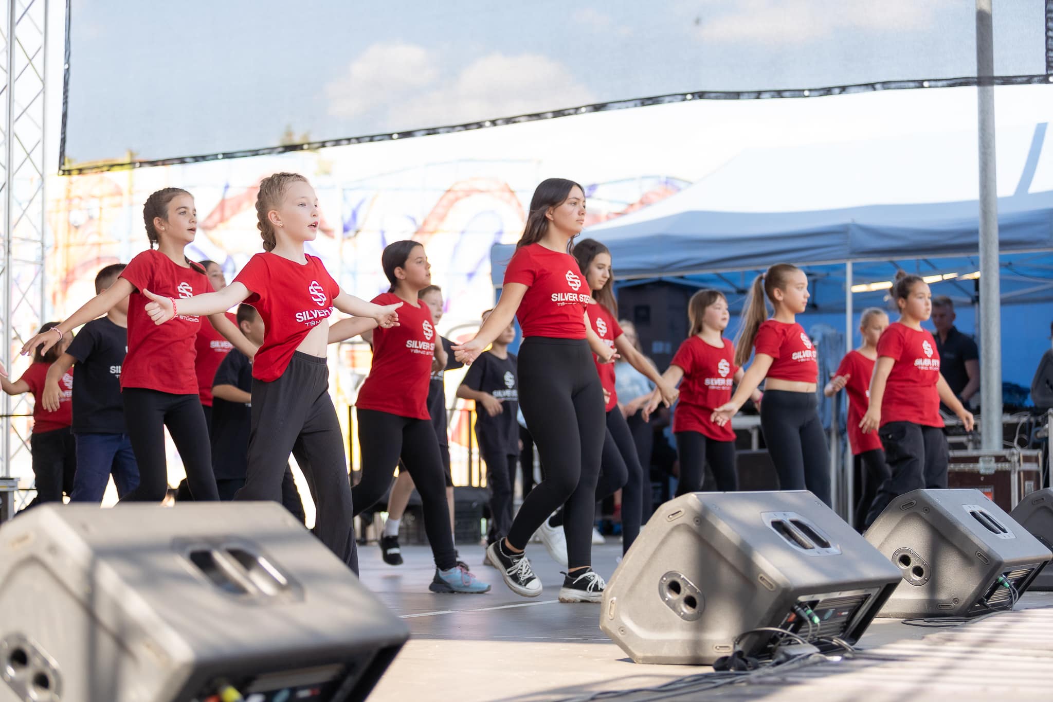 A Silver Step Táncstúdió növendékeinek bemutatójával kezdődött a szerda délutáni nagyszínpadi programsor a sportcsarnok parkolójában.