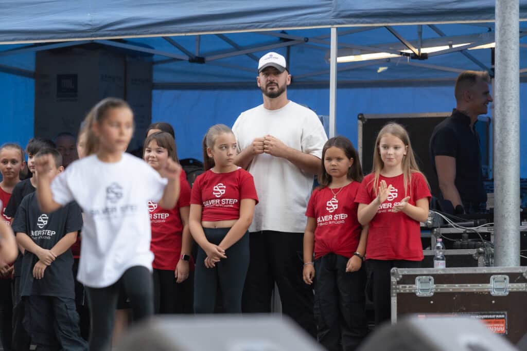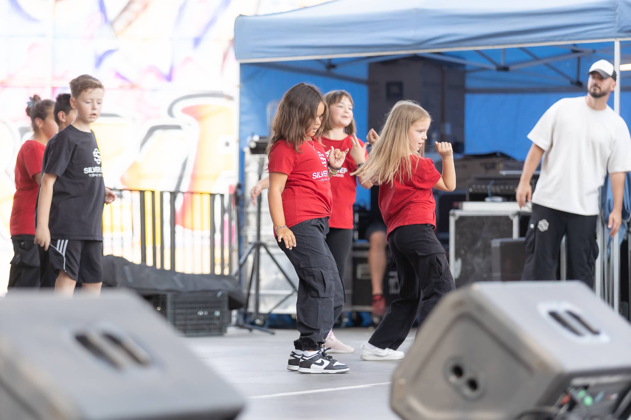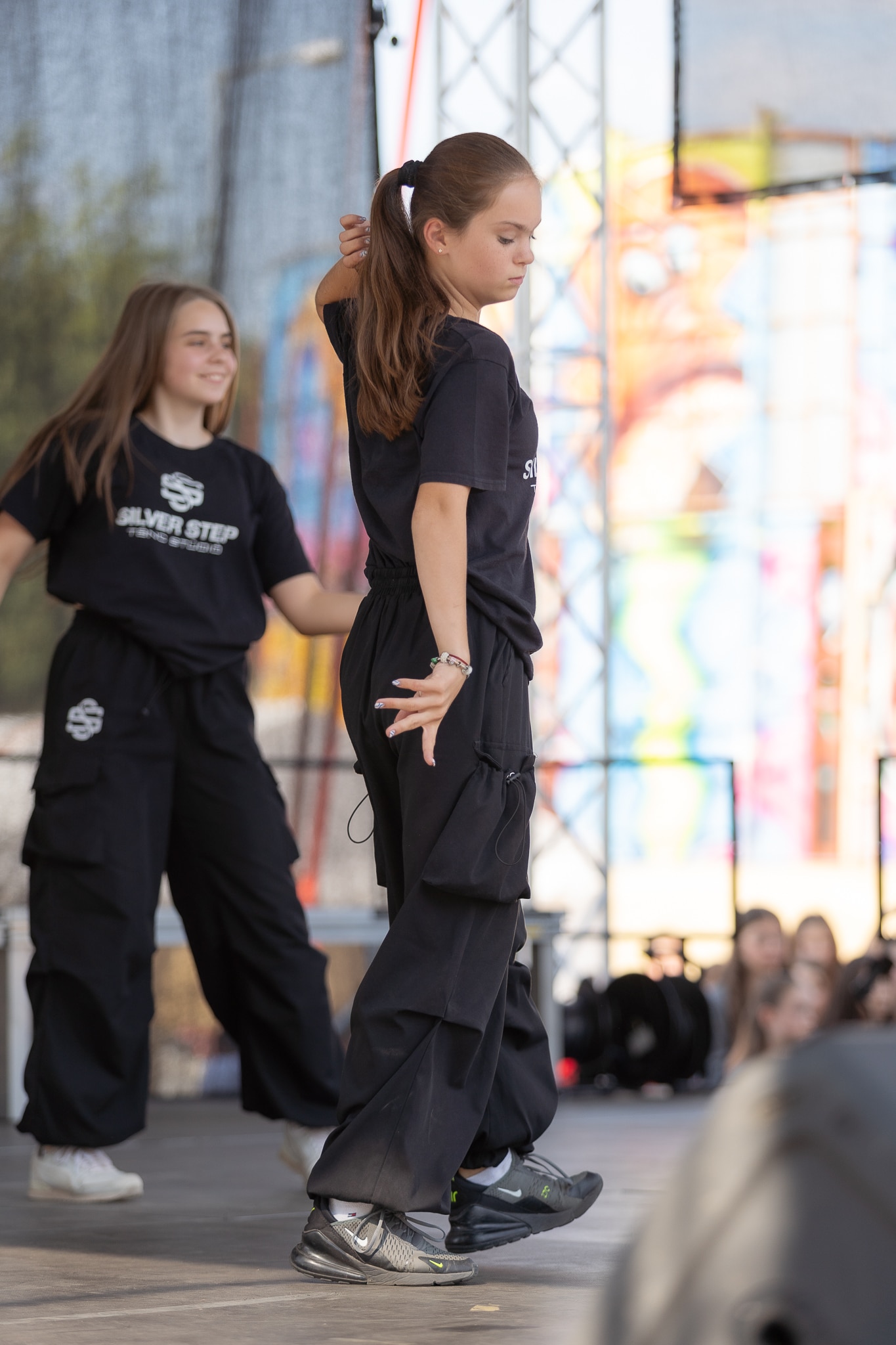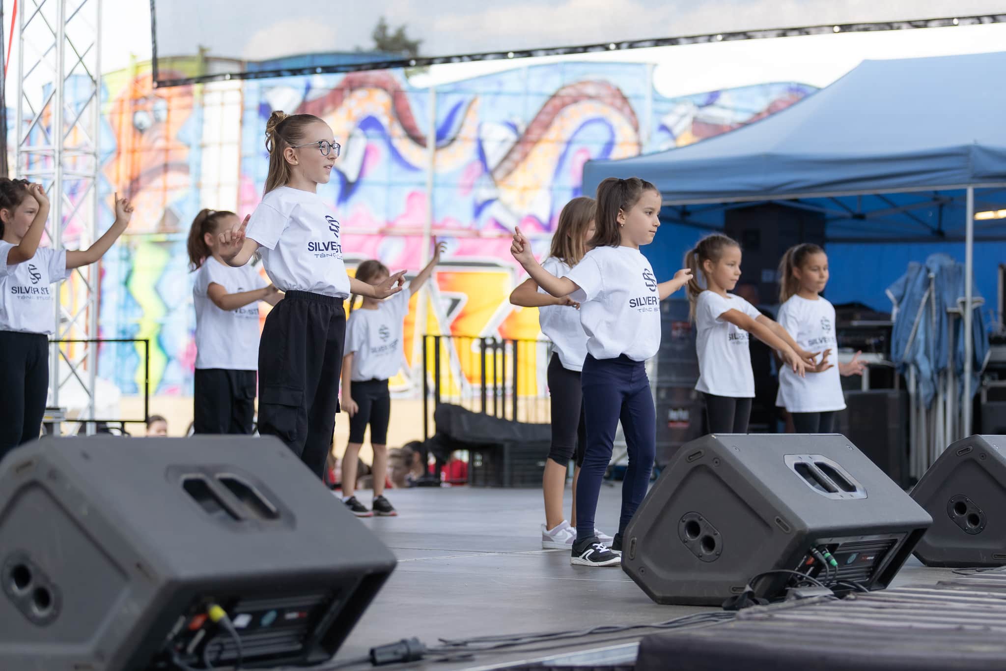 A Silver Step Táncstúdió növendékeinek bemutatójával kezdődött a szerda délutáni nagyszínpadi programsor a sportcsarnok parkolójában.